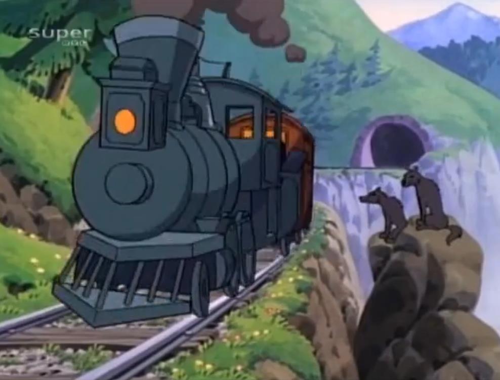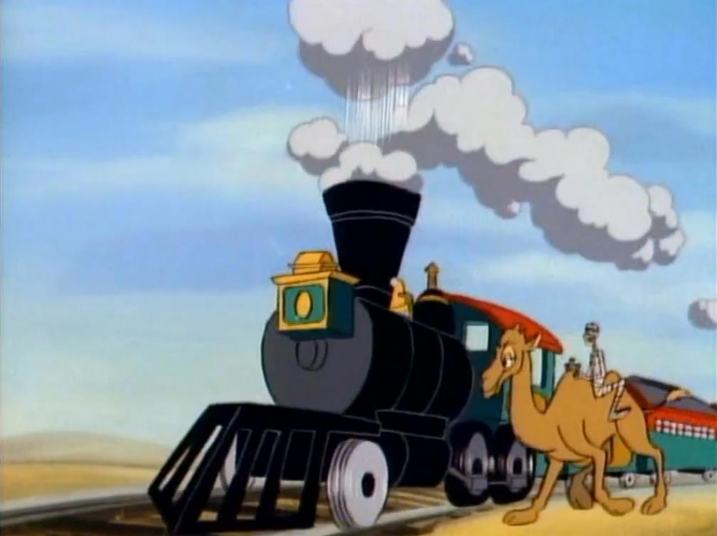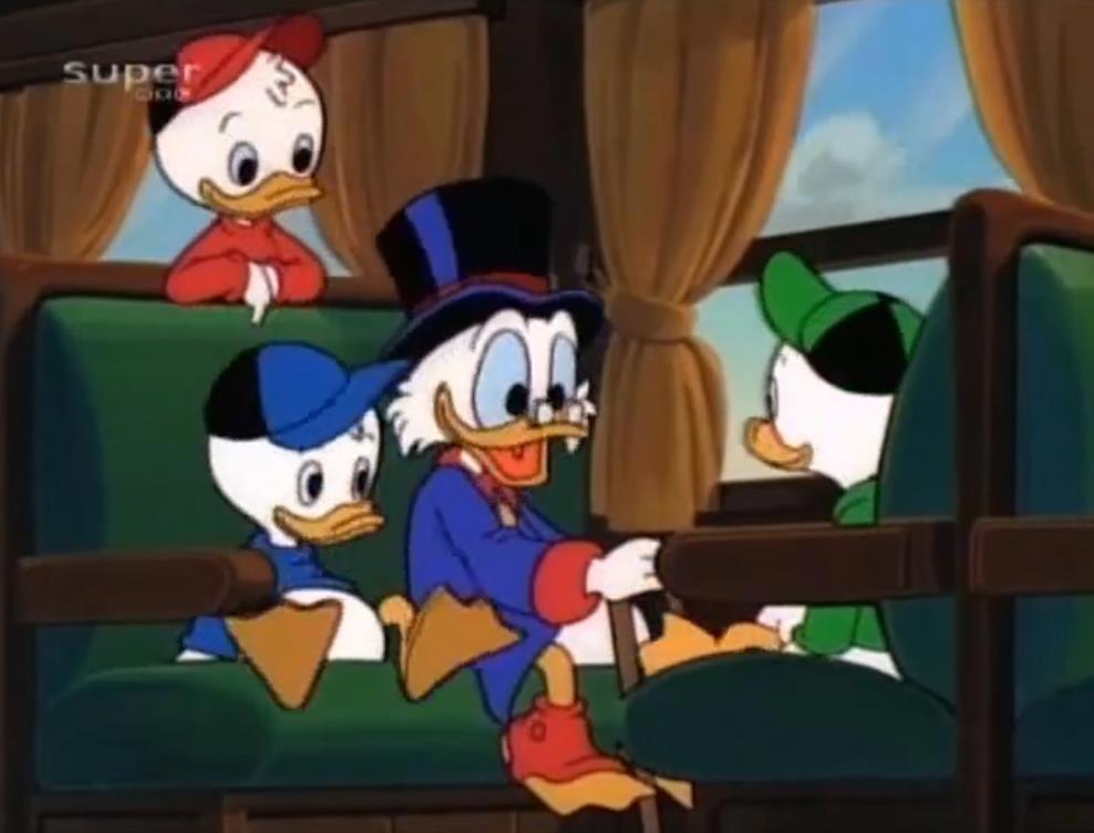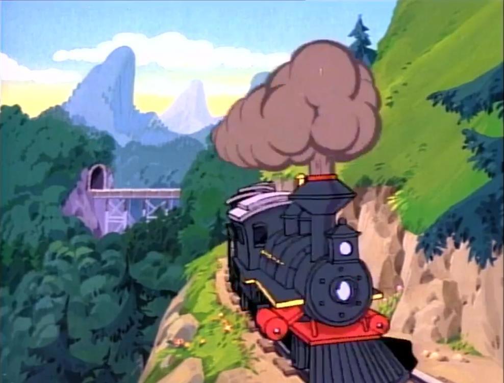 Из своего любимого Диснея могу упомянуть поезда в сериалах про уток, в Утиных историях это обычно паровозы: