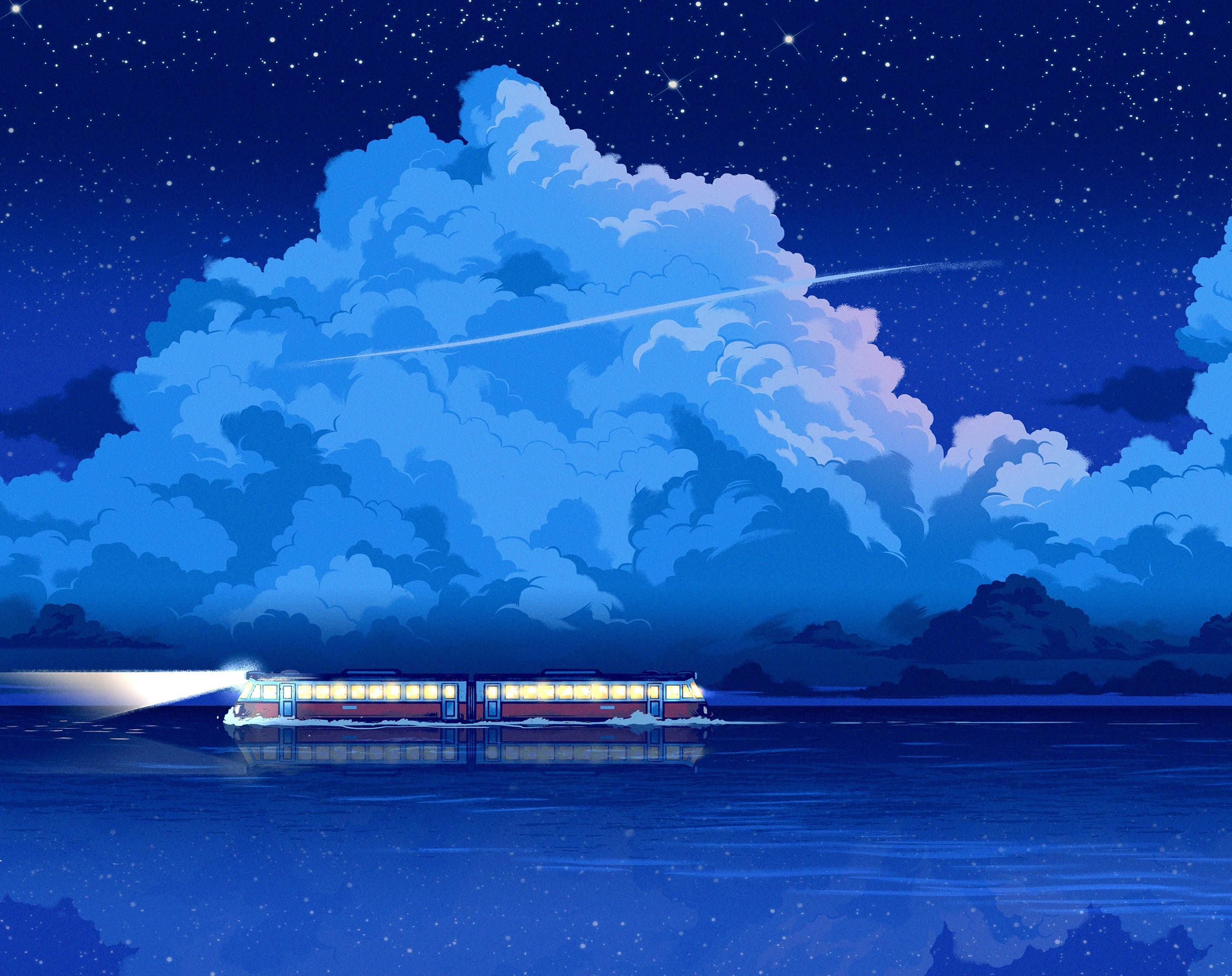Унесённые призраками. Чуть ли не трамвайчик, двух-вагонный поезд, едущий посреди морских просторов - что может быть сказочнее?