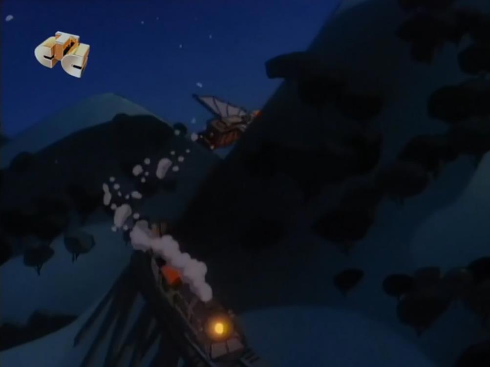 В Чипе и Дейле на игрушечном поезде банда Толстопуза грабили банк: