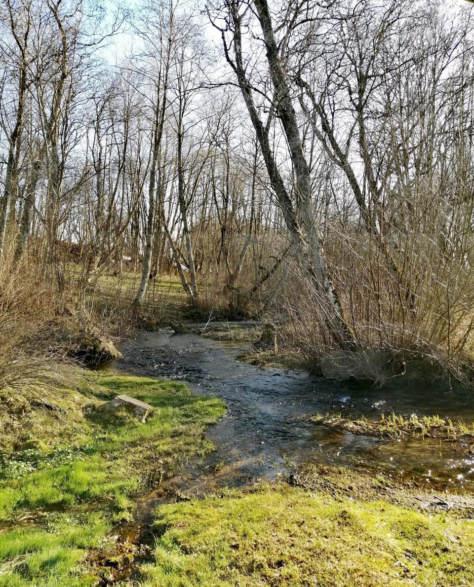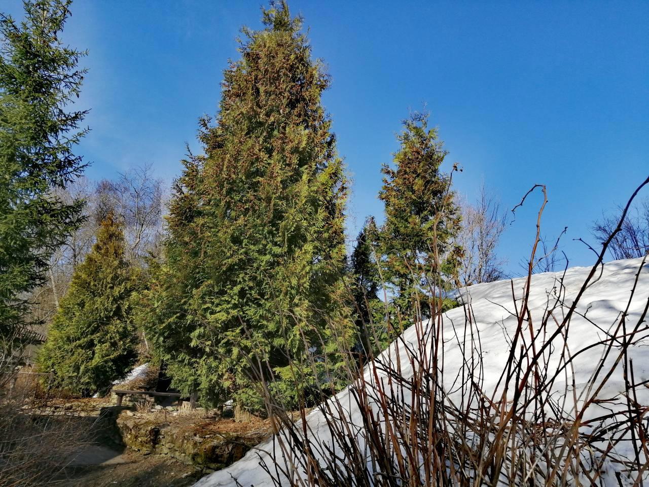 Травка уже зеленеет, а снег на северной стороне склона ещё не растаял.