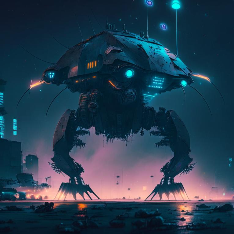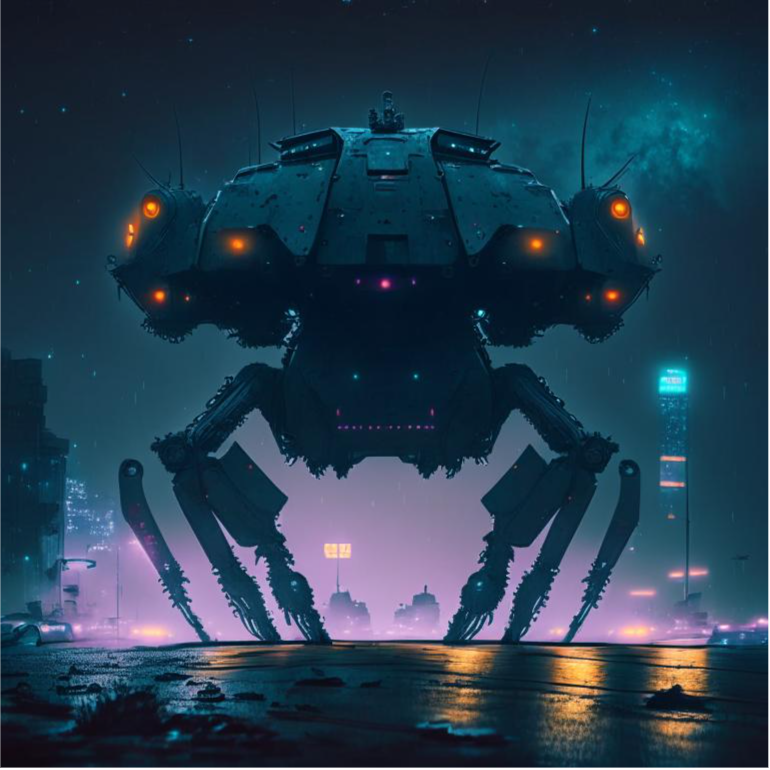 Нейроарт № 3. Шестиногий шагающий танк на фоне ночного неба
