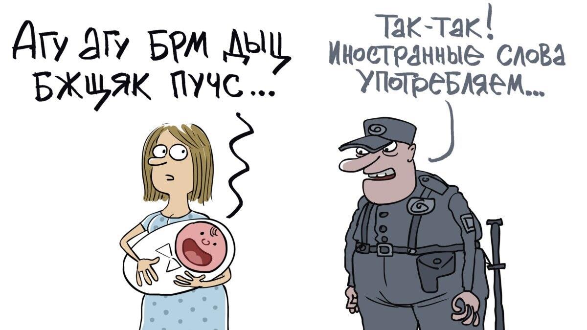 Один политик - штатный шут Кремля, впадая в старческий маразм, потребовал: «Убрать эту букву гадкую, это азиатчина, нас за это не любят в Европе… Это от монгол к нам пришло, ни в одном европейском языке буквы «ы» нет. Гортанный звук, это звери так говорят: «ы-ы». «И» — все, достаточно».