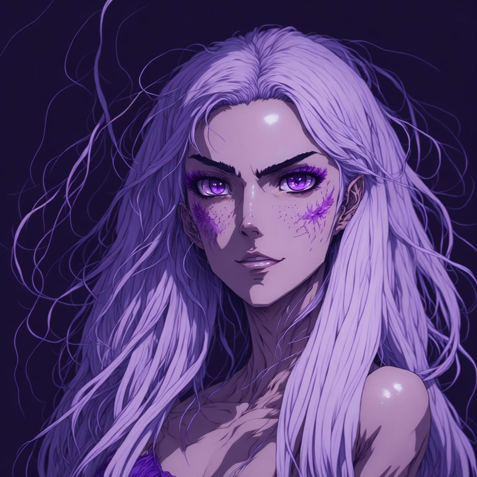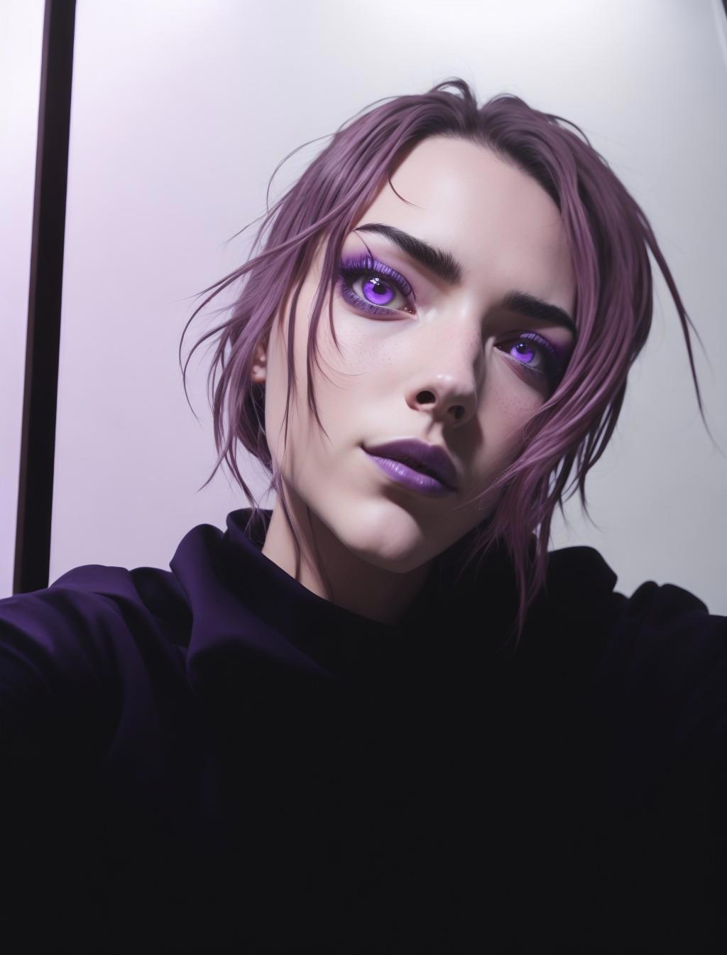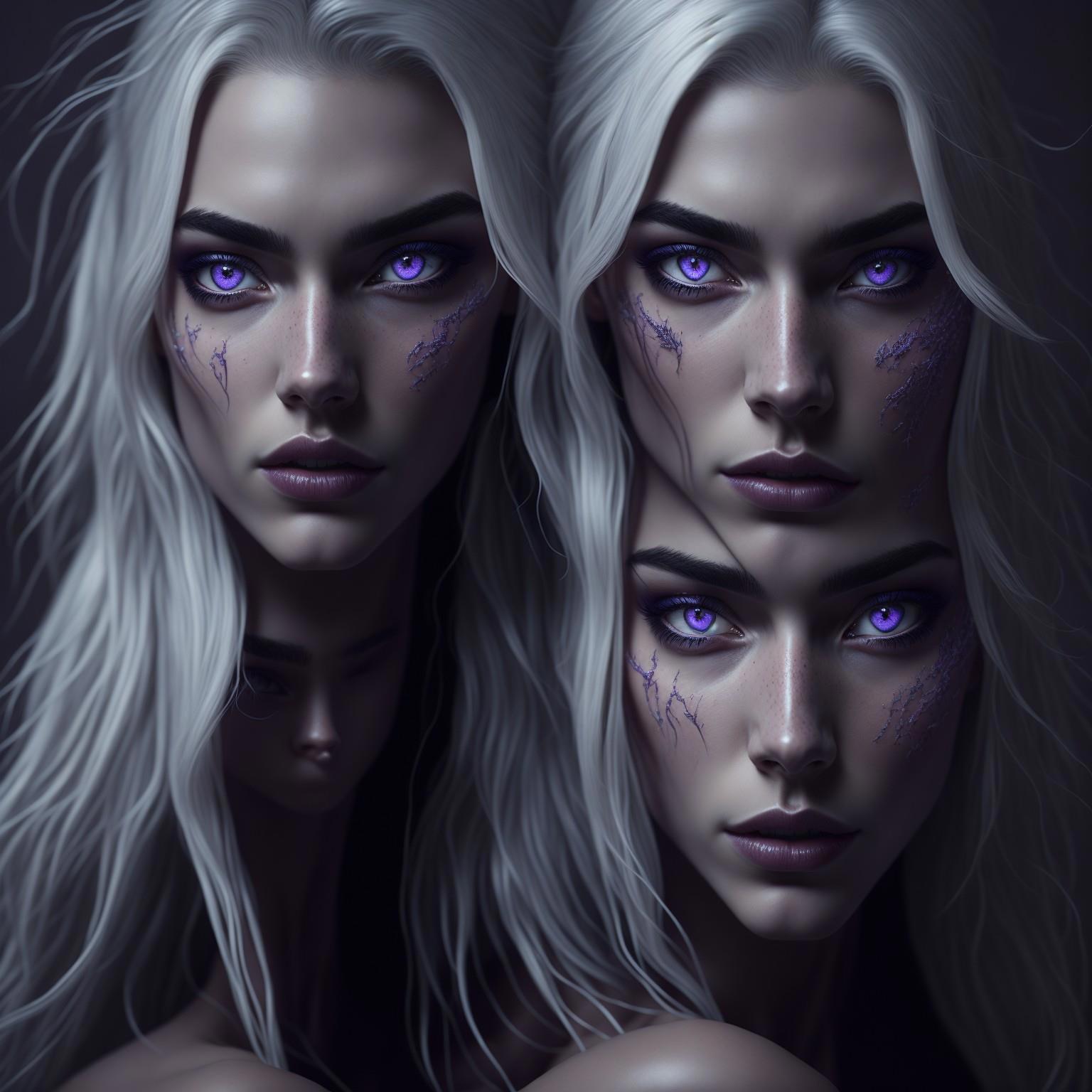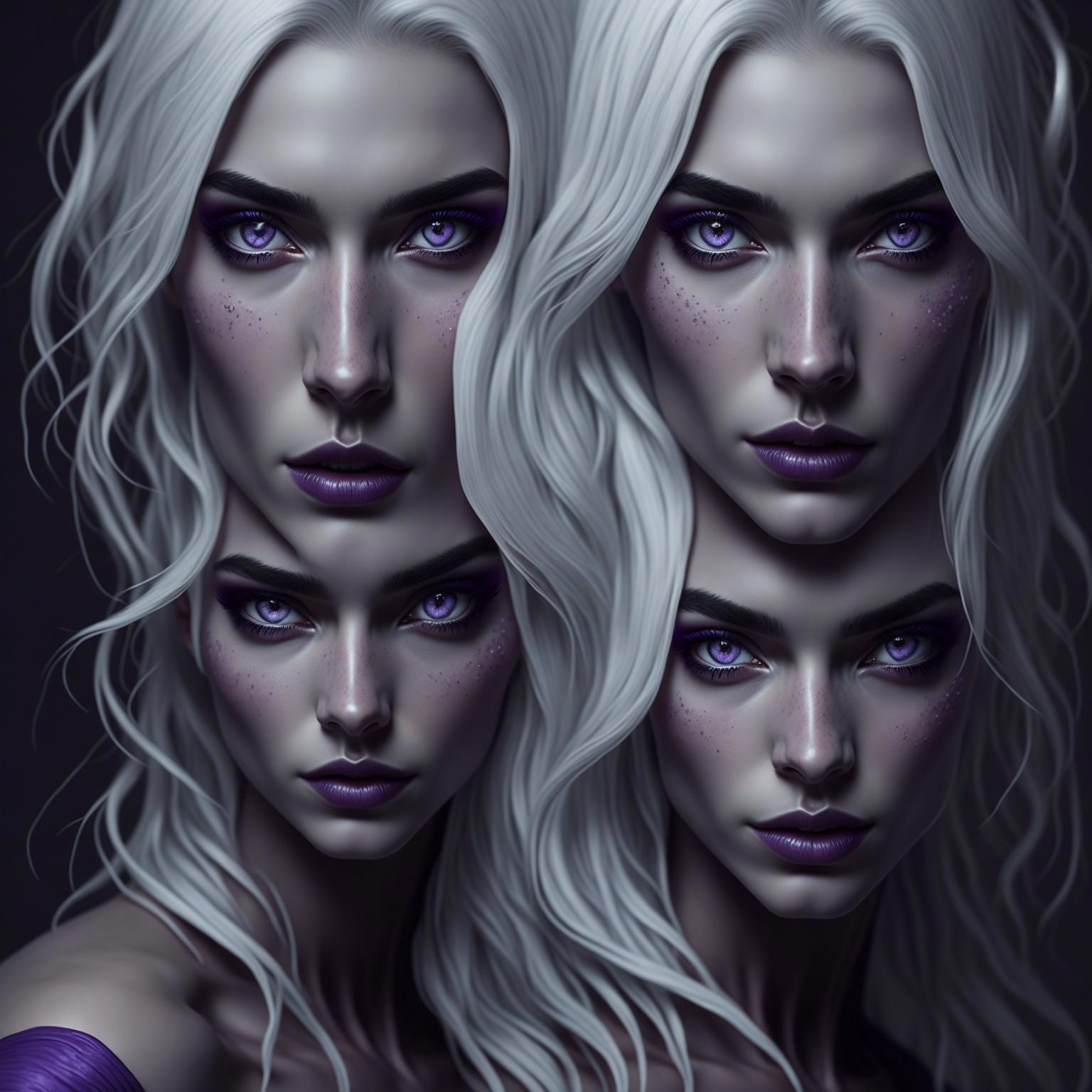 Зачем нейросеть пририсовывает к фиолетовым глазам узоры на щеках, я так и не понял, пришлось долго с тегами играть. Чтобы получить сразу 4 лица: