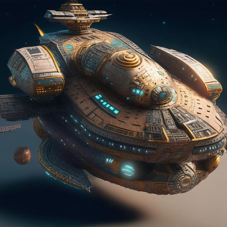 Автор: Александр КипчаковСуществует вполне достойный аналог широко известной Midjourney - российский проект Rudall-E, внутри которой наличествуют несколько подсетей. И вот одна такая подсеть под названием "Kandinski 2.1" и привлекла моё внимание. Как оказалось, она генерирует вполне достойные картинки, которые можно использовать в качестве иллюстраций или основной темы для обложки или чего-либо в таком роде. Здесь я хочу продемонстрировать вам несколько примеров, сделанных с помощью Kandinski 2.1. В качестве темы взяты космические корабли древних человеческих культур, которые могли бы существовать при определённом развитии земной цивилизации. Итак,