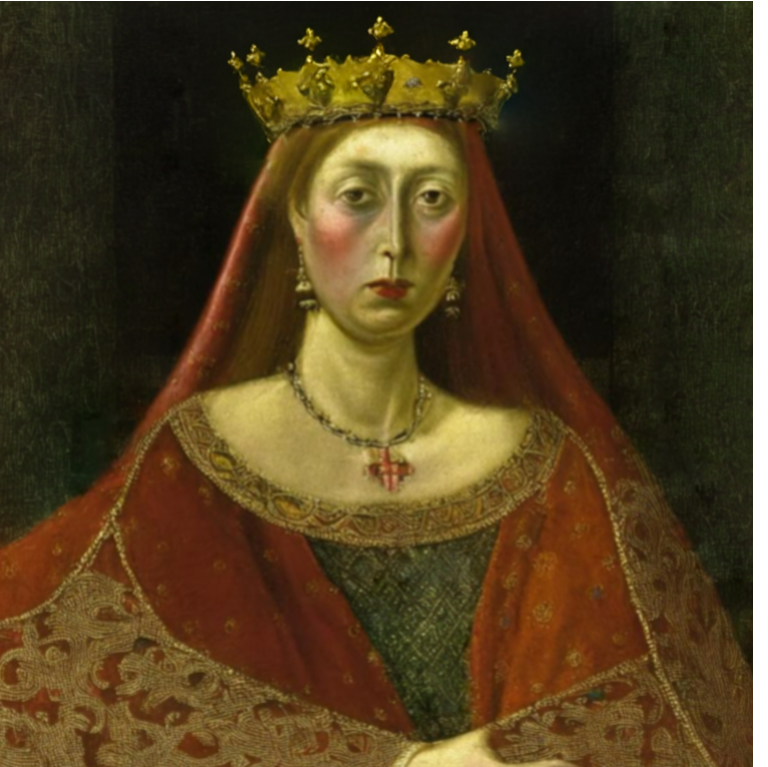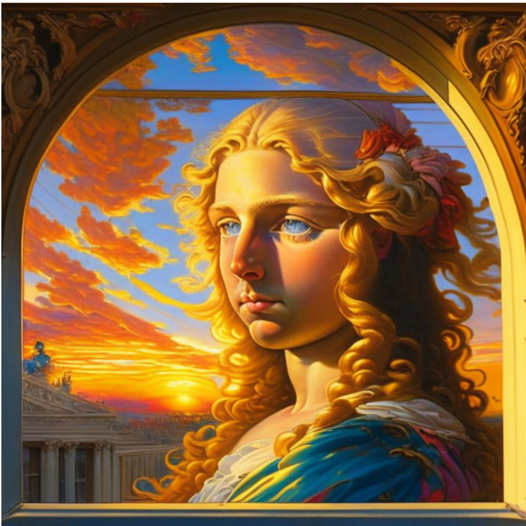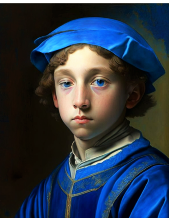 Аньес Релинген получилась гораздо лучше, хотя и не совсем по роману. Зато видно, что с творчеством Боттичелли нейросеть хотя бы частично знакома. Будем считать, что так свою жену изобразил на картине после обучения в Италии Жорж-Мишель.