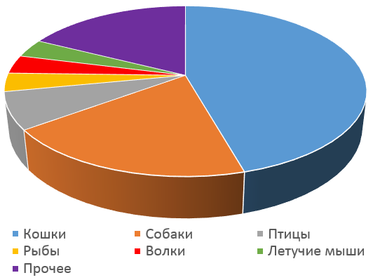 - кошки (включая диких) – 26 штук;
