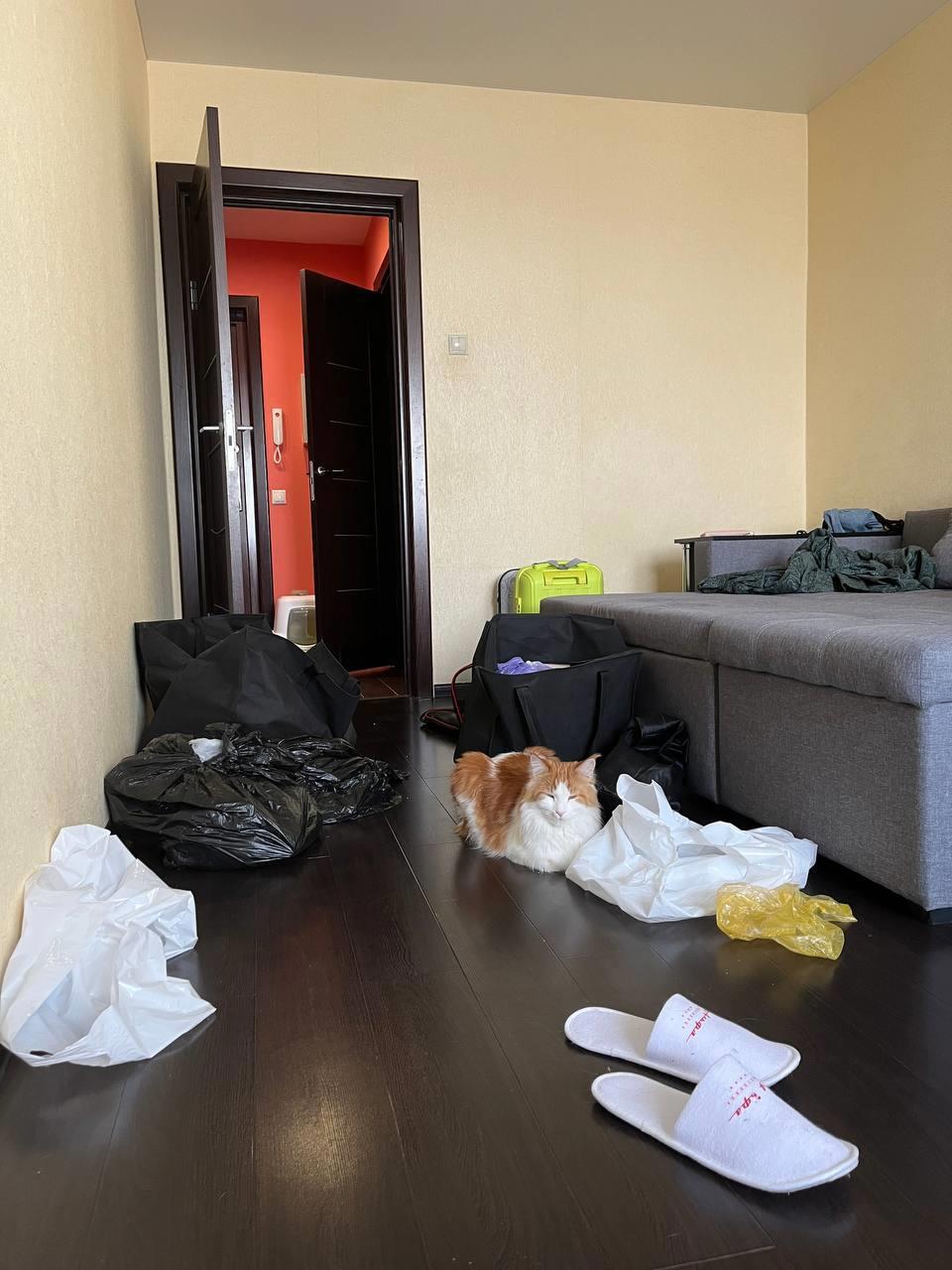 Вещи пока не разложены, ночью я просыпаюсь от того, что Кнопка копает очередную сумку.