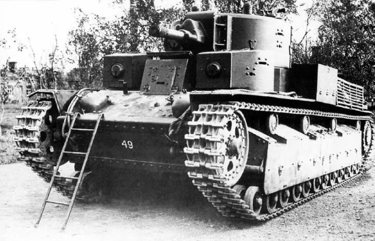 3. Т-28 — основной серийный образец (1934-1938 гг.). Вооружение: 76,2-мм танковая пушка и 5 пулеметов ДТ.