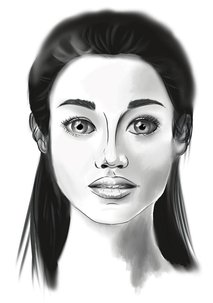 У меня не получились глаза от слова совсем. Не получились такими, как их задумала природа для девушки. Я очень старалась, но, видимо, опыт все же… нужно набить руку. Открыла для себя такую офигенную вещь, как «отзеркалить». Товарищи по ремеслу, пользуйтесь. Я вот отзеркалила и оказалось, что нарисовала гоблина. Потом снова отзеркалила, потом снова, пока не получилось сносно.