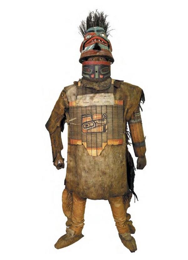 Восемь суровых парней, облаченных в полный тлинкитский доспех... Нет, не из говна и палок. А из твердого дерева, кости и кожи. Не много перьёв. Много кожаных ремней.