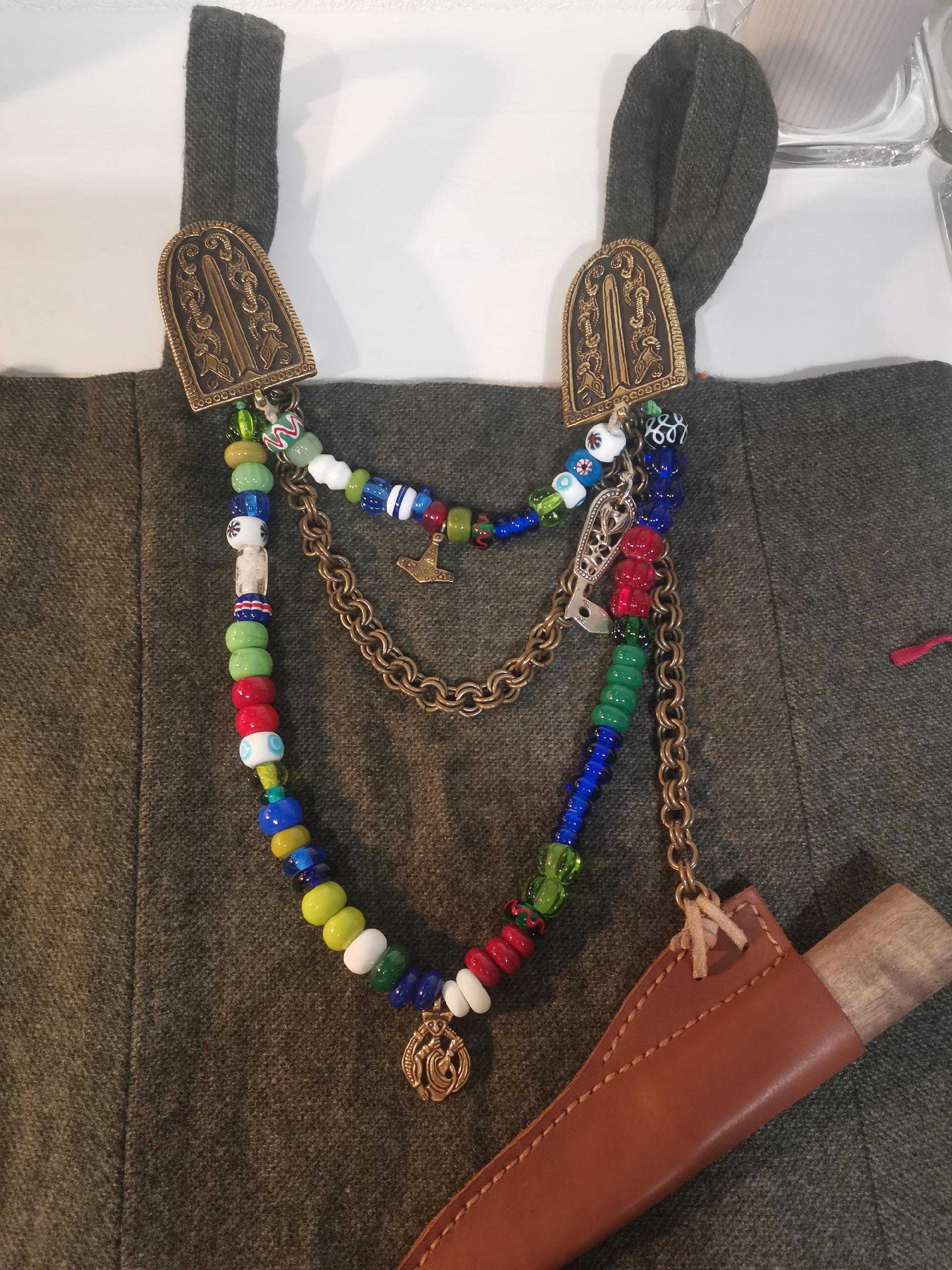 У меня есть еще такие бусины (часть из них на Норвегию, часть на Ладогу, с костюмом их не ношу, но с современной одеждой ― да):