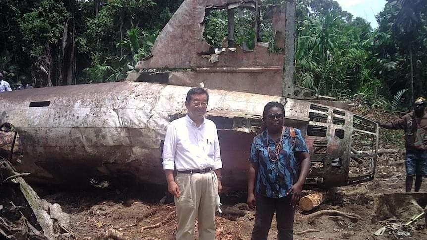 (Ржавый фюзеляж бомбардировщика "Бетти" на месте своего крушения. Именно на этом самолёте совершил свой последний полёт в вечность великий японский адмирал. Личности, позирующие на фоне остатков бомбардировщика мне неизвестны)
