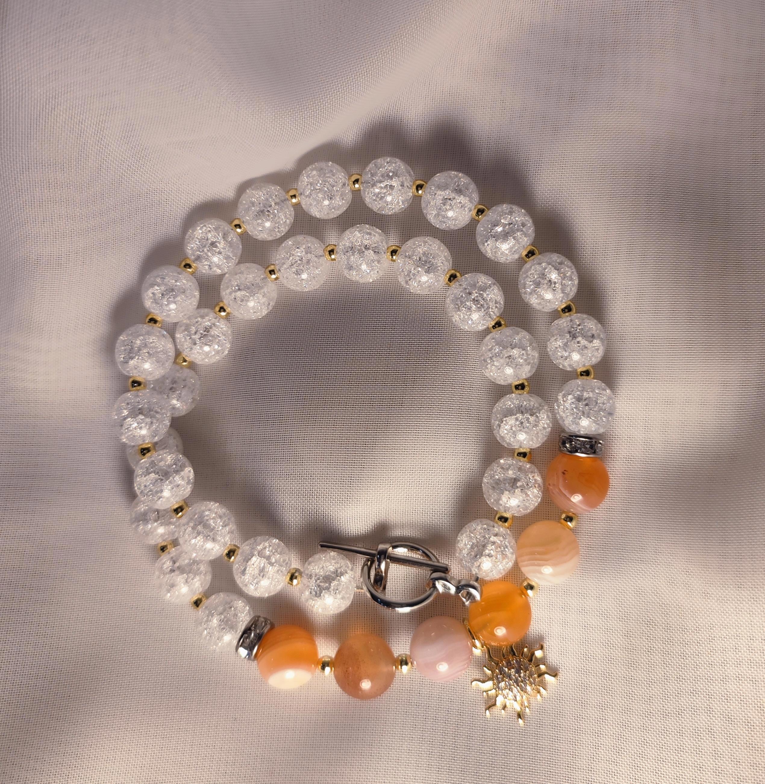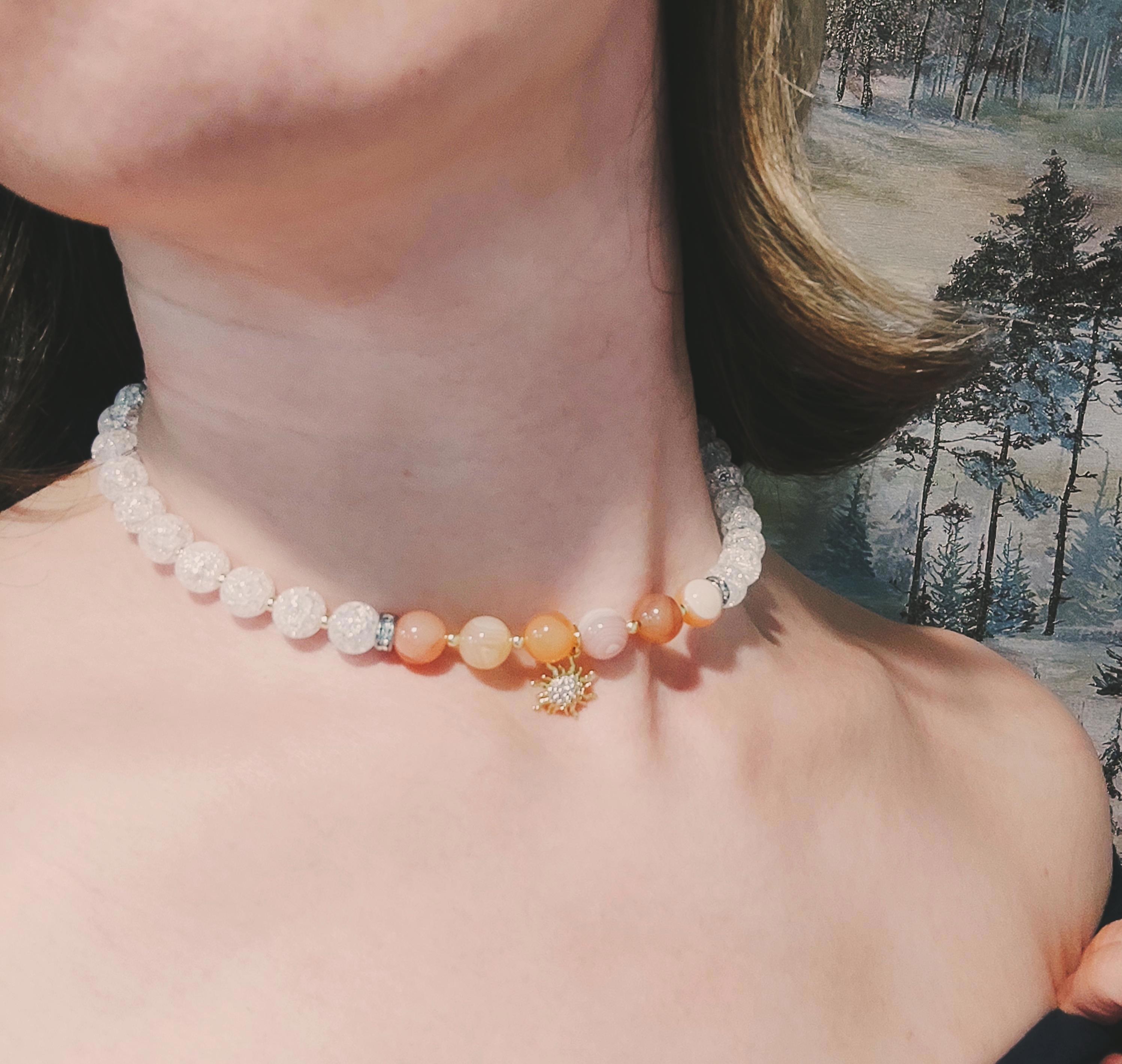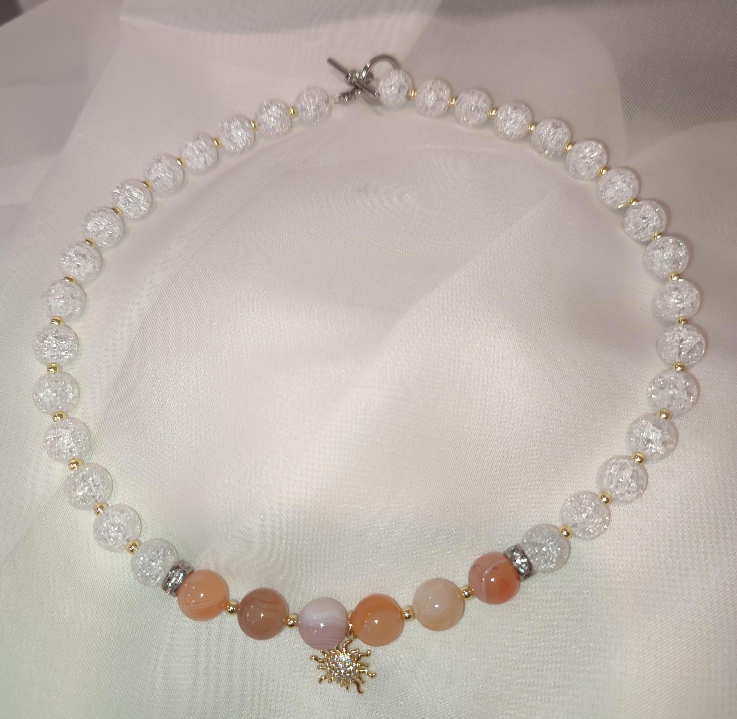 Автор: Алина ПотехинаЗафигачила себе красоту для настроения. Агат ботсвана и сахарный кварц. Дополнения из гематита и металла. Основа - ювелирный тросик. Застёжку надо бы под цвет, но делала для себя, поэтому не сильно заморачивалась)).