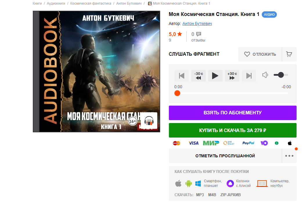 Ссылку вставлять не буду, потому что всё же на АТ совсем недавно появились свои аудиокниги. Так, вот, о чём это я? Ах, да! У меня появились Аудиокниги по МКС! Пока первая часть, но на подходе еще несколько!
