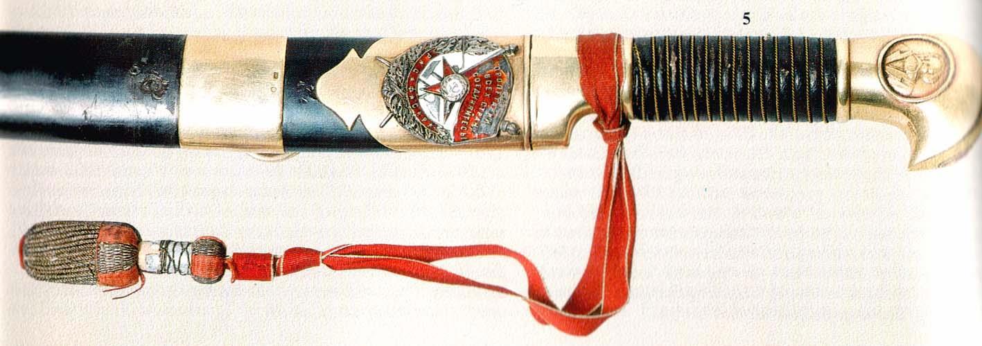 Однако это были дела прошлые, а советскому правительству требовались свои награды для отличившихся бойцов и командиров. 16 сентября 1918 года был учрежден орден Красного Знамени РСФСР, а с 1919 года начались награждения военачальников почетным революционным оружием «с наложенным на эфес знаком ордена Красного Знамени».