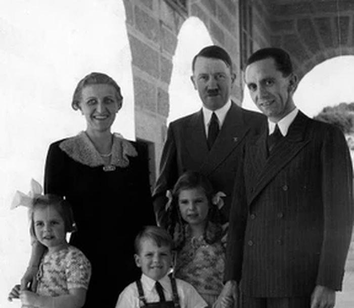 Эта счастливая семейная фотография с Гитлером была опубликована прошлой осенью, чтобы утихомирить слухи о разводе после одной из любовных интрижек Геббельса. На самом деле снимок был сделан ранее.