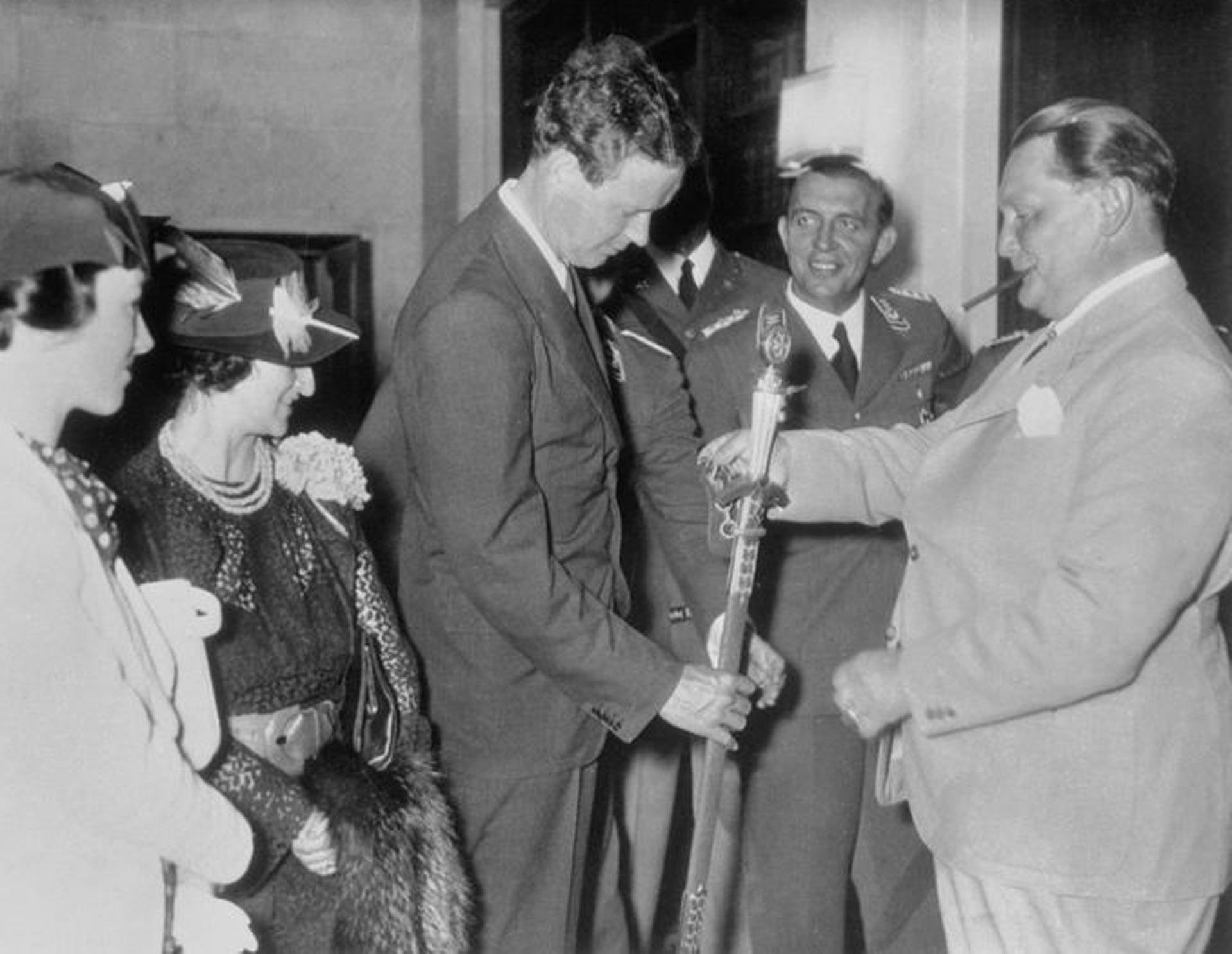 Линдберг посещал Геринга в 1936, 1937 и 1938 годах. Во время первой поездки он осмотрел один из церемониальных мечей Геринга, а миссис Линдберг наблюдала за ним. Геринг поразил Линдберга во время его последнего визита, вручив ему вторую по величине нацистскую награду.