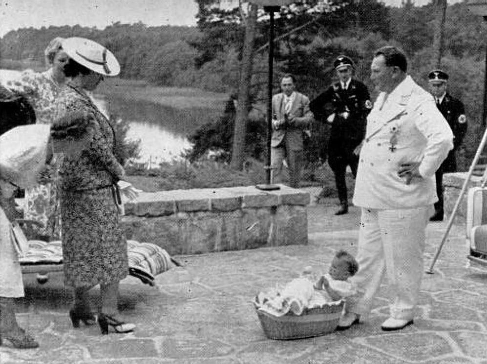 Геринг с гордостью демонстрирует посетителям свою годовалую дочь Эдду, названную в честь жены министра иностранных дел Италии. В день рождения ребенка газета Гитлера посвятила всю первую полосу Герингу как отцу семейства — ”День с дядей Германом".