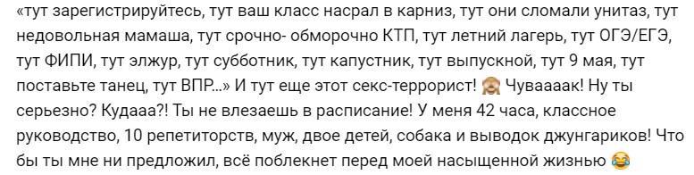 Короче, живо ещё российское образование, если у заваленных работой учителей, несмотря ни на что, всё-таки срабатывает чувство юмора!)