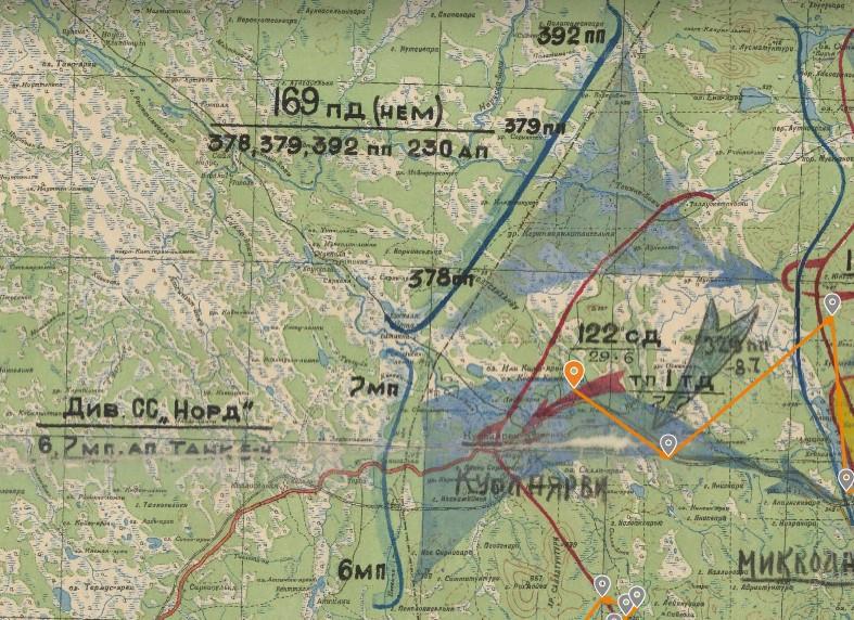 Начиная с 7 июля, на основании боевого приказа штаба корпуса, 1-я танковая дивизия одним таковым полком с двумя батальонами мотополка совместно с частями 122-й стрелковой дивизии обороняли полосу в районе Юнааиванселька, Витхарью, Кусизара.