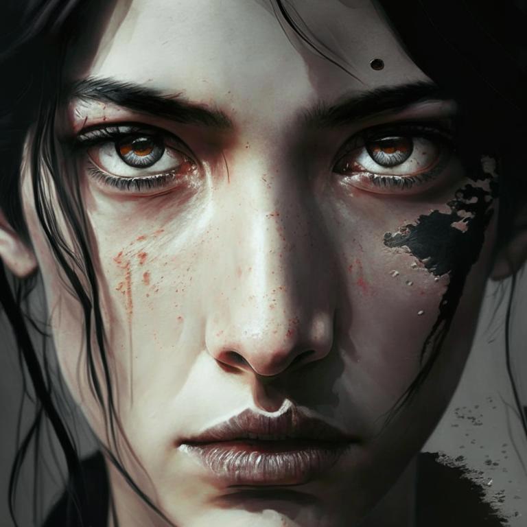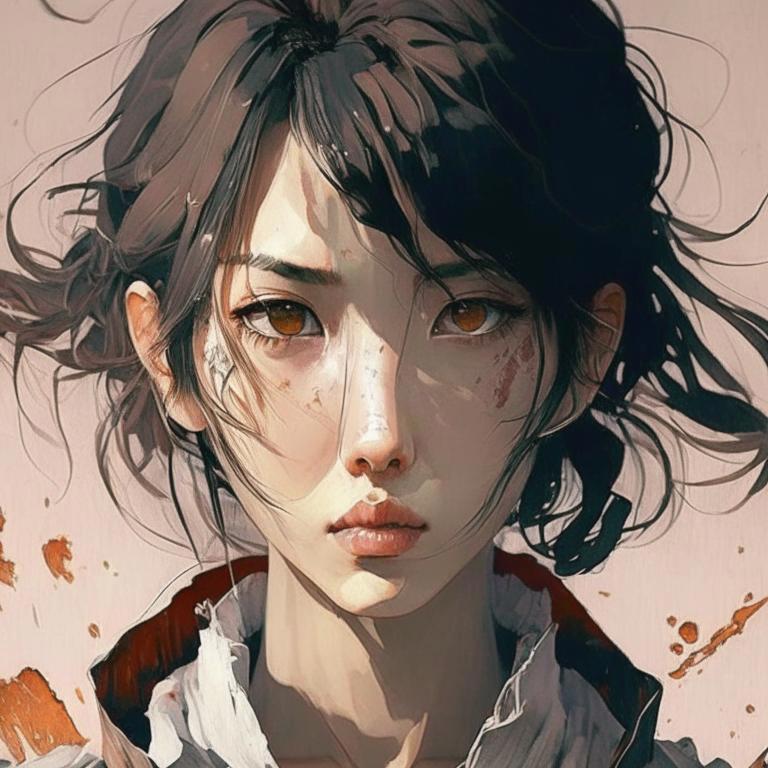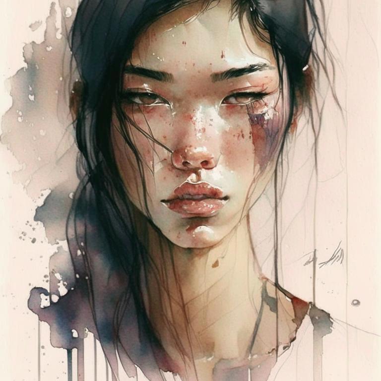 Суровый молодой брюнет, усталость, азиат, акварель. Стиль: artstation