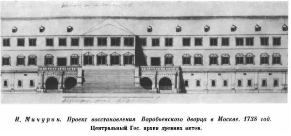 При Анне Иоанновне Воробьёвский дворец сильно обветшал и его даже собирались снести. Но в казне на это не нашли денег. Потому архитектору Ивану Фёдоровичу Мичурину поручили обмерить здание и предложить, как его можно реконструировать.