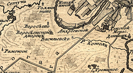 Фрагмент карты Царствующего града Москвы 1763 — 1766 годов.