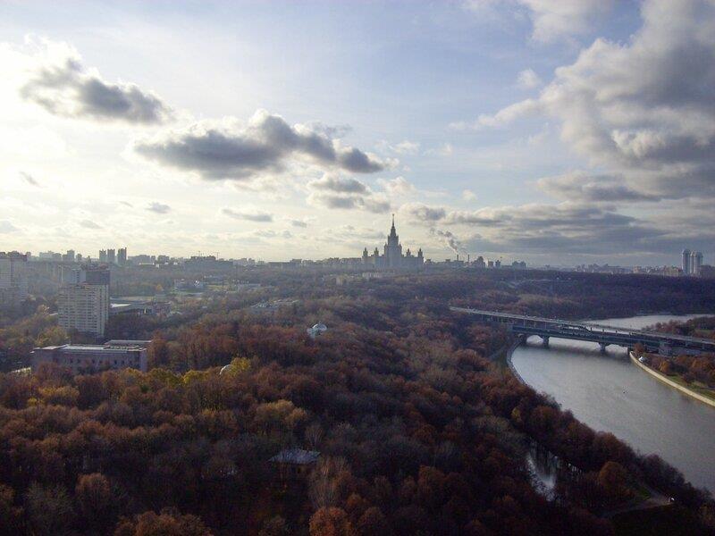 Автор: Д. В. АмурскийВ этом месте правый берег в излучине Москвы-реки поднимается над водой довольно круто. Перепад высот между верхней точкой Воробьёвых гор и уровнем реки достигает 80 метров. Ныне плоскую вершину этих "гор" украшает Главное здание МГУ, самая впечатляющая из семи построенных в Москве сталинских высоток. Но и раньше это место не пустовало.