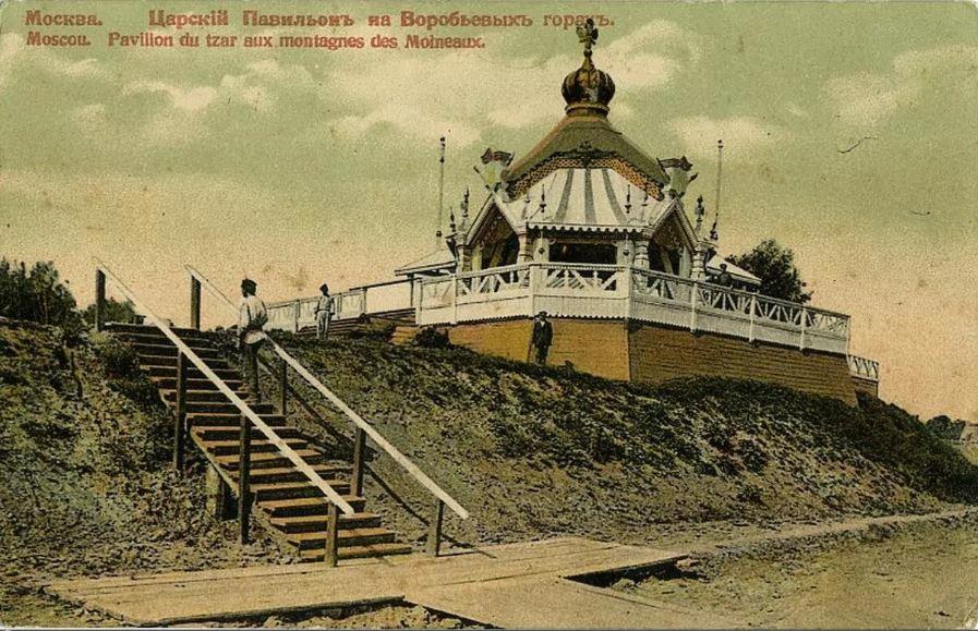 В 1896 году к коронации императора Николая II и императрицы Александры Фёдоровны на месте бывшего Воробьёвского дворца построили "царский павильон" со смотровой площадкой. Оттуда открывался великолепный вид на Москву. К сожалению, это сооружение не сохранилось.