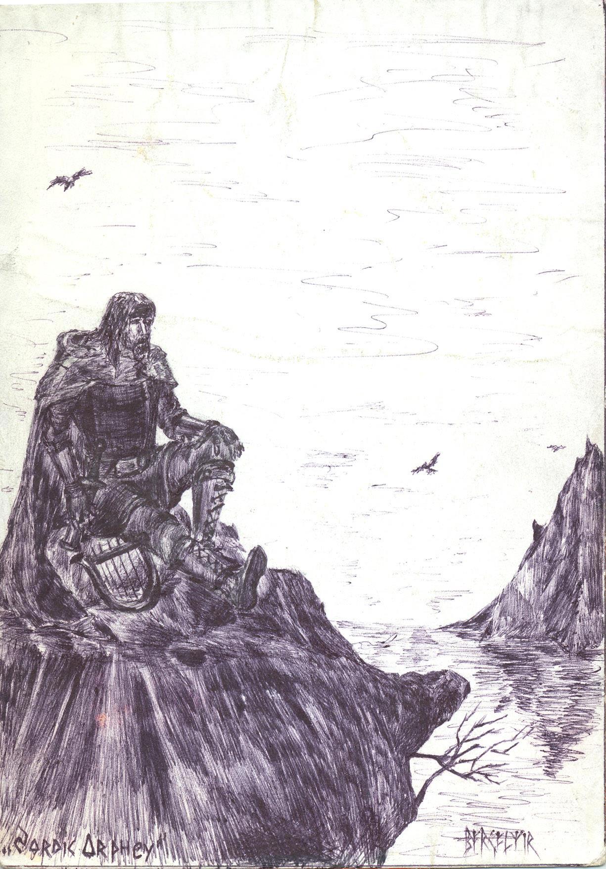 Один из самых старых рисунков, ему 22 года. Кладбищенские пляски и свистоперделки. Самому тут нравится только определенная захваченная динамика, получившаяся совершенно случайно. Дальше с этим стало хуже. Очень пафосная картинка, называющаяся "Северный Орфей". Какой смысл, кроме упомянутого пафоса хотел вложить - вряд ли вспомню. Этому 21 год.