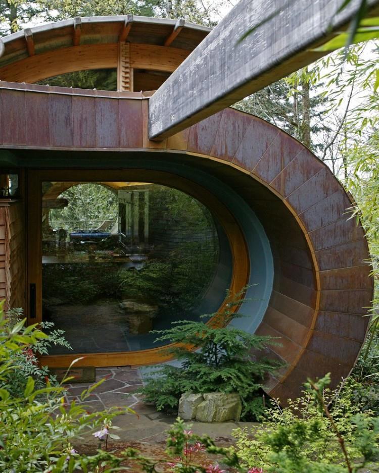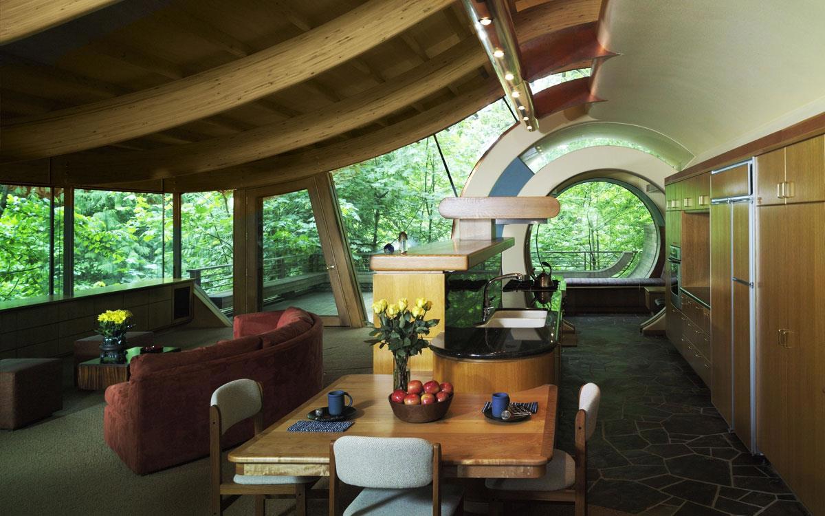 Помимо классических видов хватает разнообразных вариантов, среди которых встречаются интересные проекты, как скажем Wilkinson Residence, авангардный, но весьма живописный и роскошный жилой дом "на дереве" (как я понял по фото, он не совсем, чтобы над землёй располагается). Но очень уж понравился своими формами и органичной архитектурой.