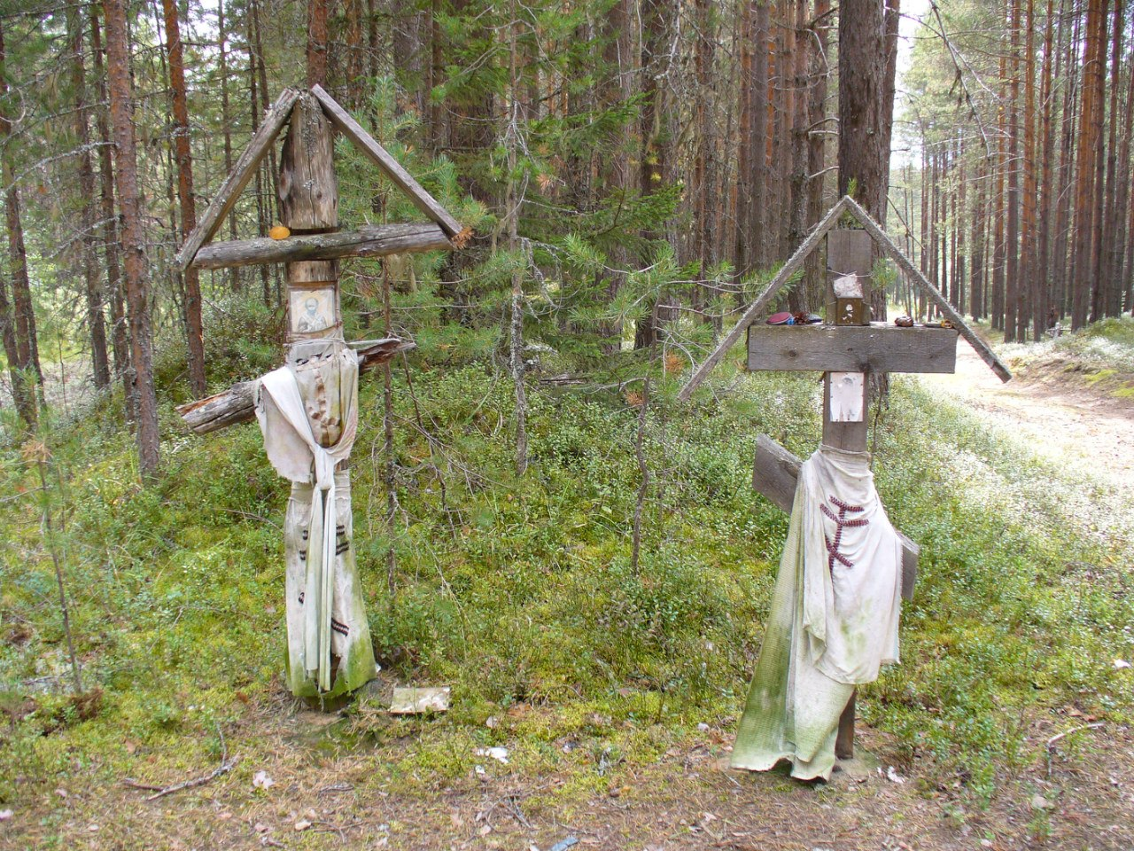 У устья Пелюги – левого притока Пинеги – в 11 верстах от Горки , поставлена часовня, красиво расположенная среди елей – на месте явления креста. Рассказывают: его хотели перевезти в деревню Монастырь, но крест не могли осилить 15 лошадей…Последней, правобережной, деревней в Горковской волости будет деревня Монастырь, прозываемая Марьина Гора с 43 домами и 250 едоков. Дальше будет в 35 верст, лесной волок в Гавриловскую волость.