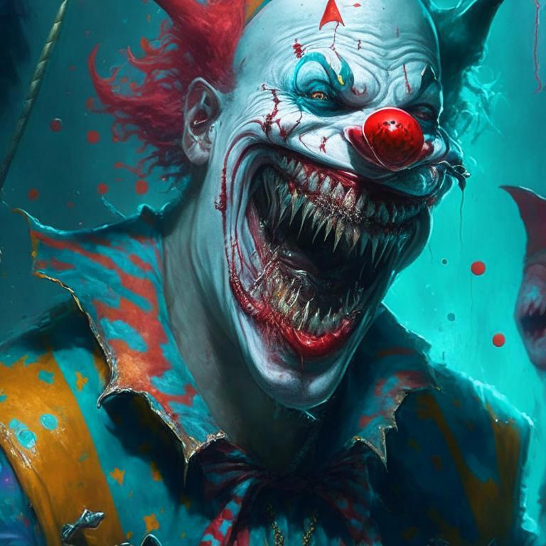 Автор: Дмитрий ТютеревСозданный через нейросеть клоун. По запросу : Клоун с пастью акулы, буйство красок, ужасы. Надеюсь, что вам понравится.