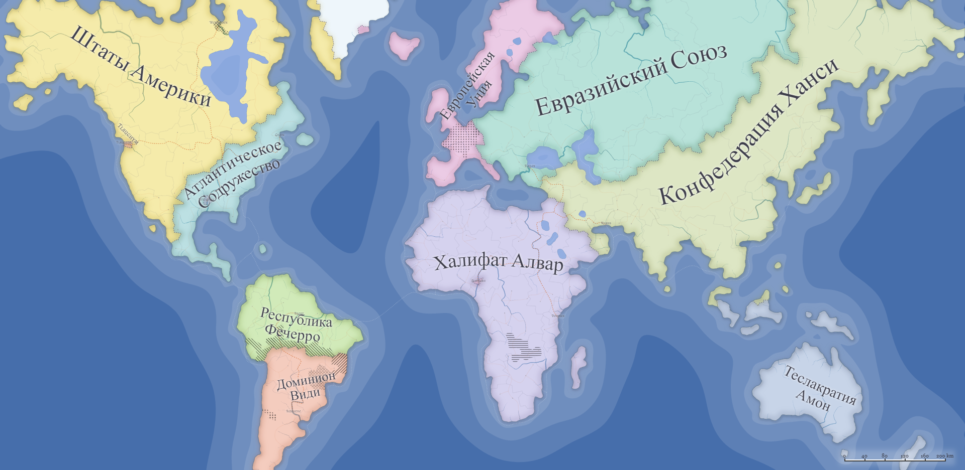 Работа только начата, поэтому всё может измениться. Под спойлером политическая карта мира.