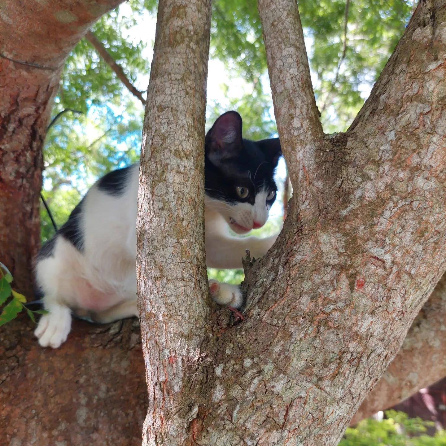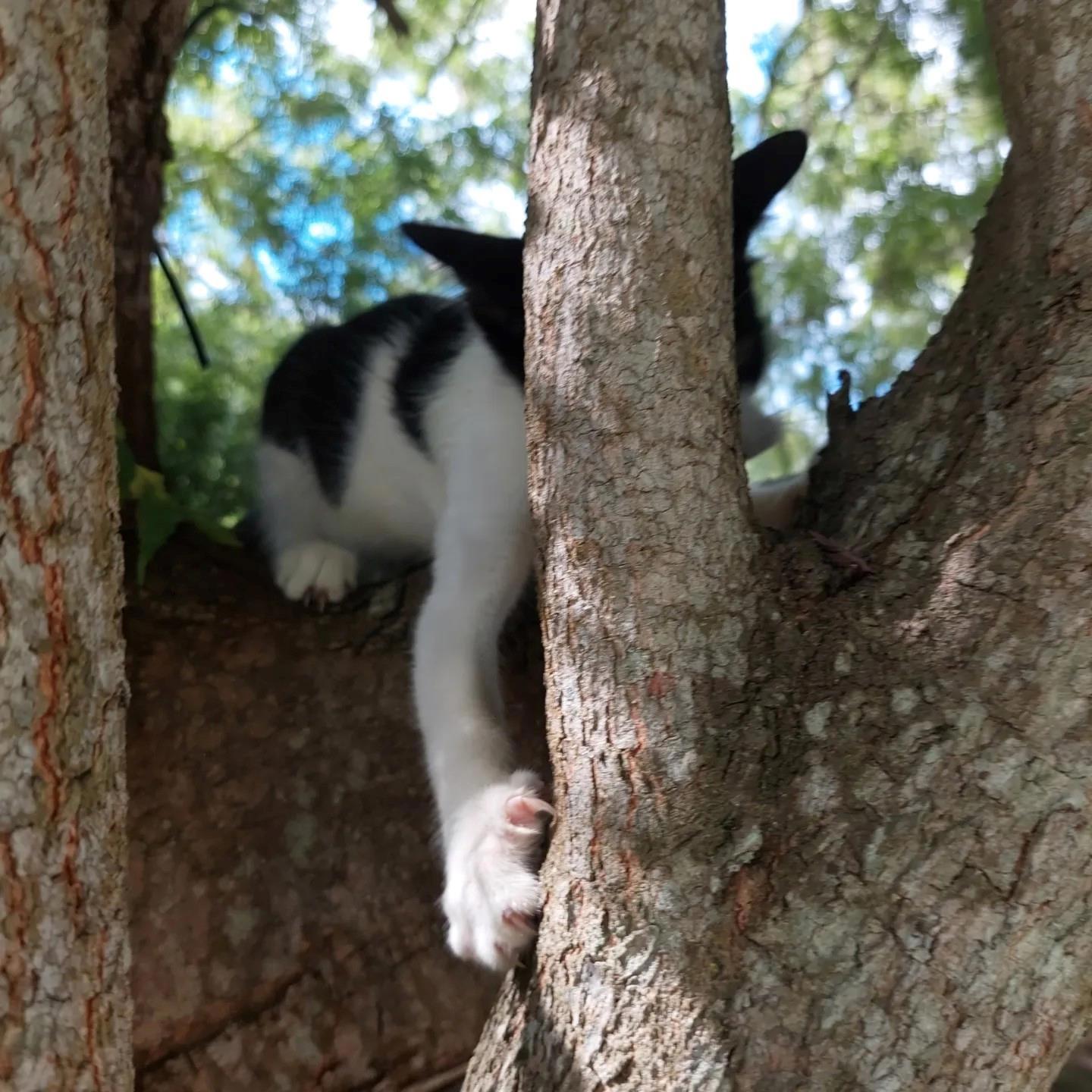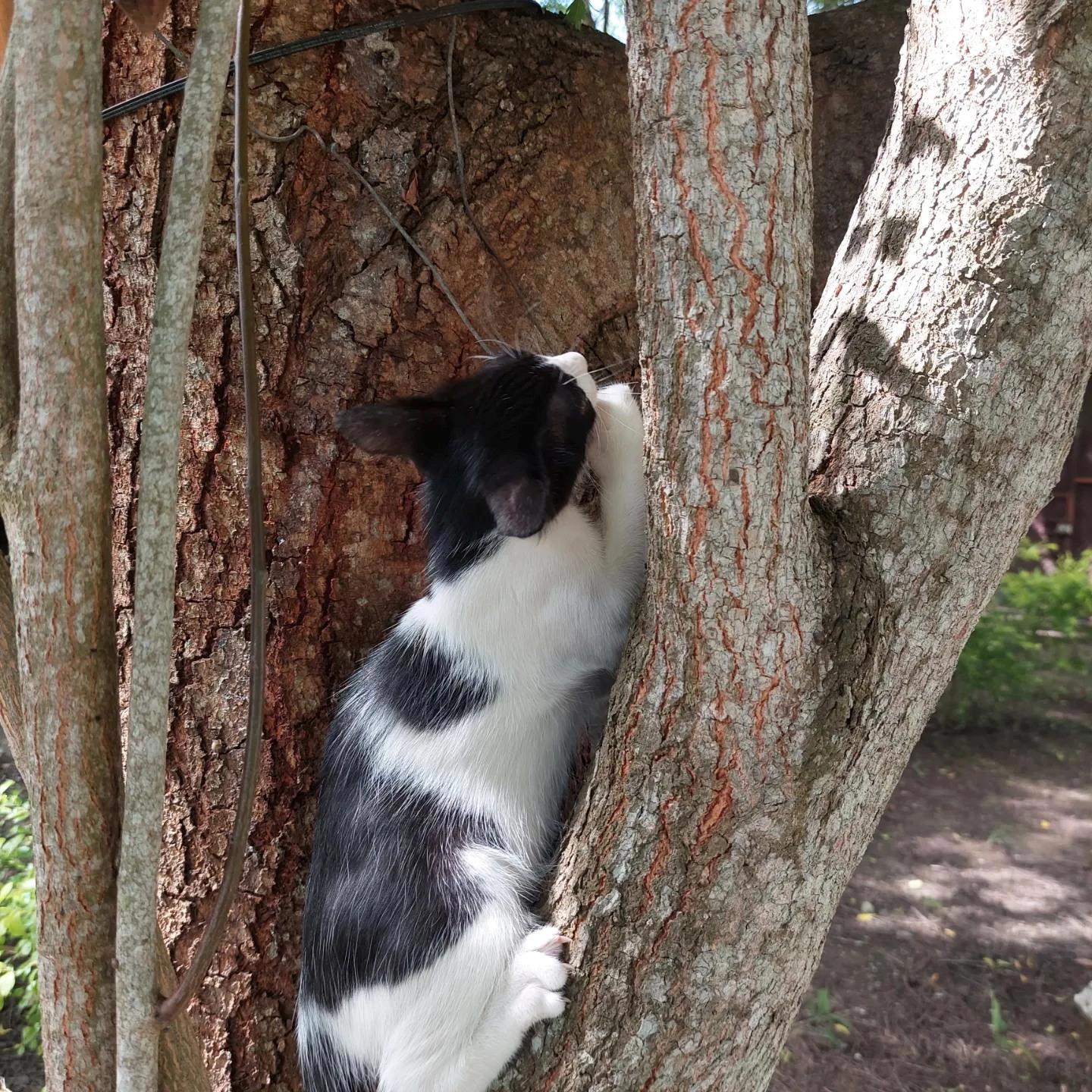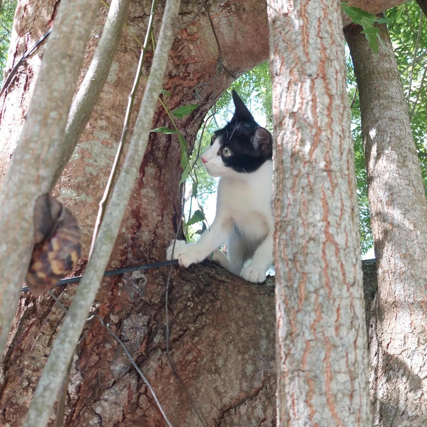 Уже сообразил, что если вдарить лапой по улитке, она прикольно падает с дерева. А еще кора, вкусная.