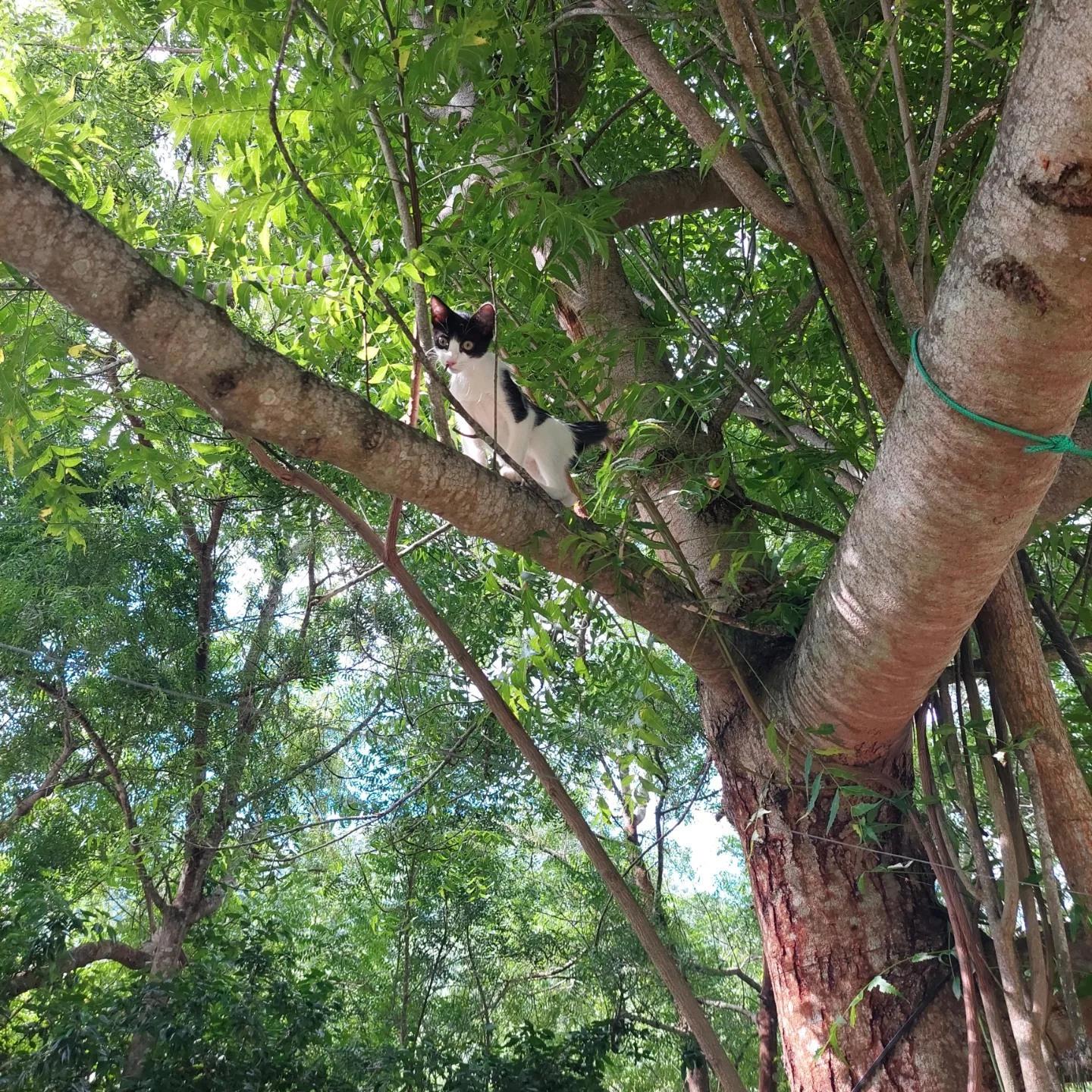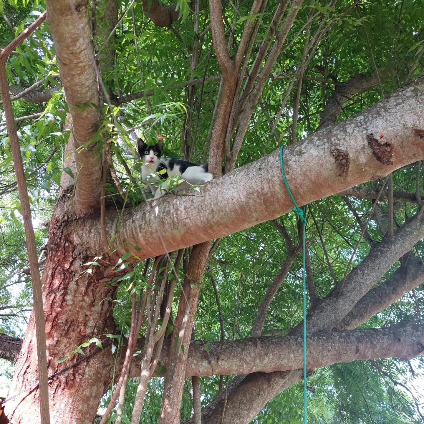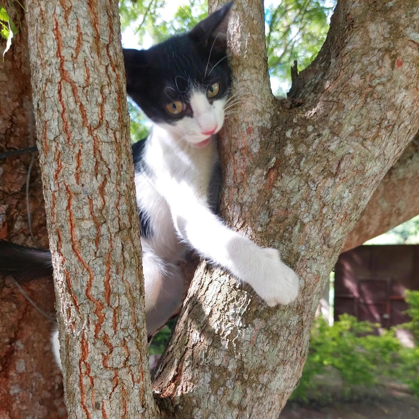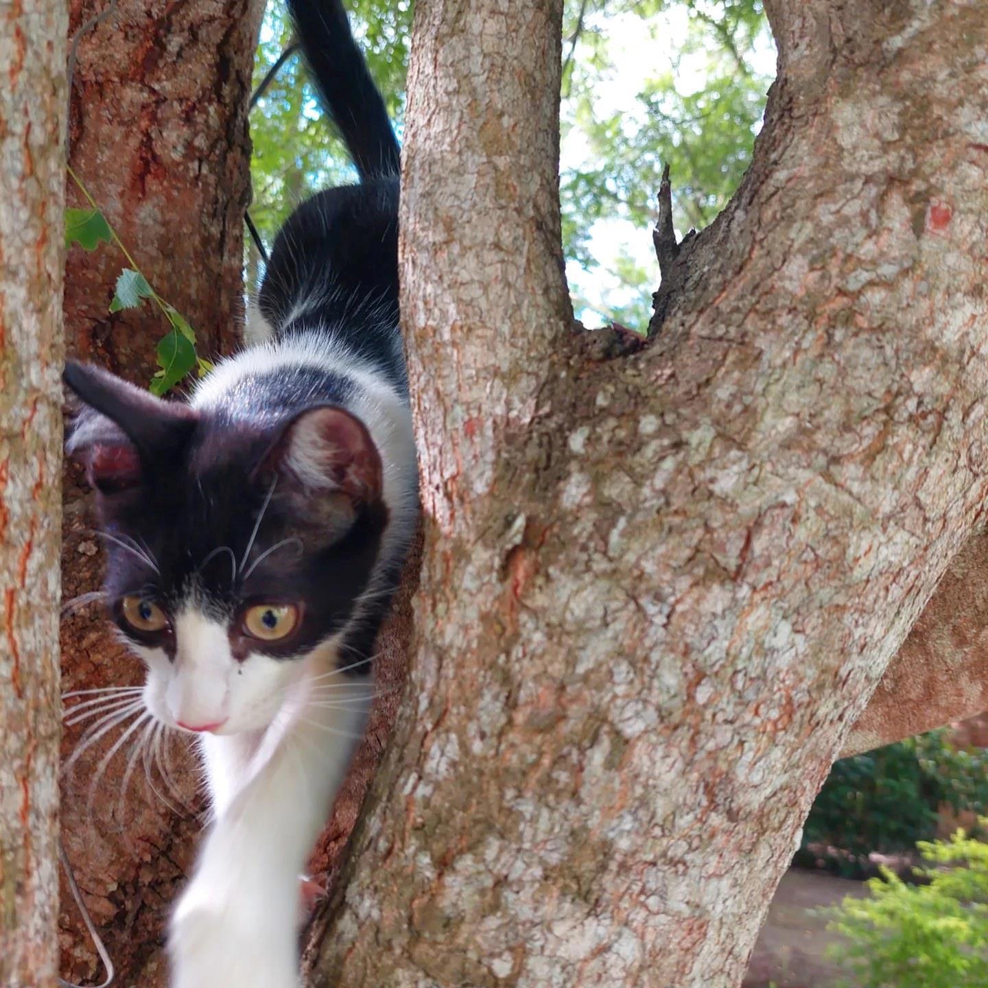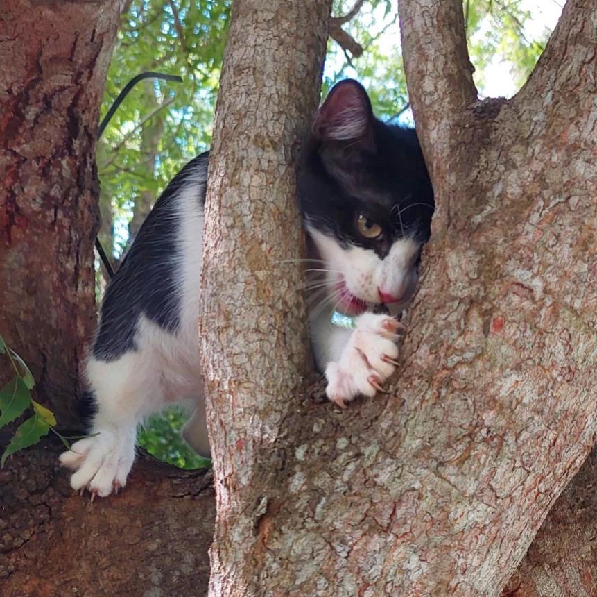 Уже сообразил, что если вдарить лапой по улитке, она прикольно падает с дерева. А еще кора, вкусная.