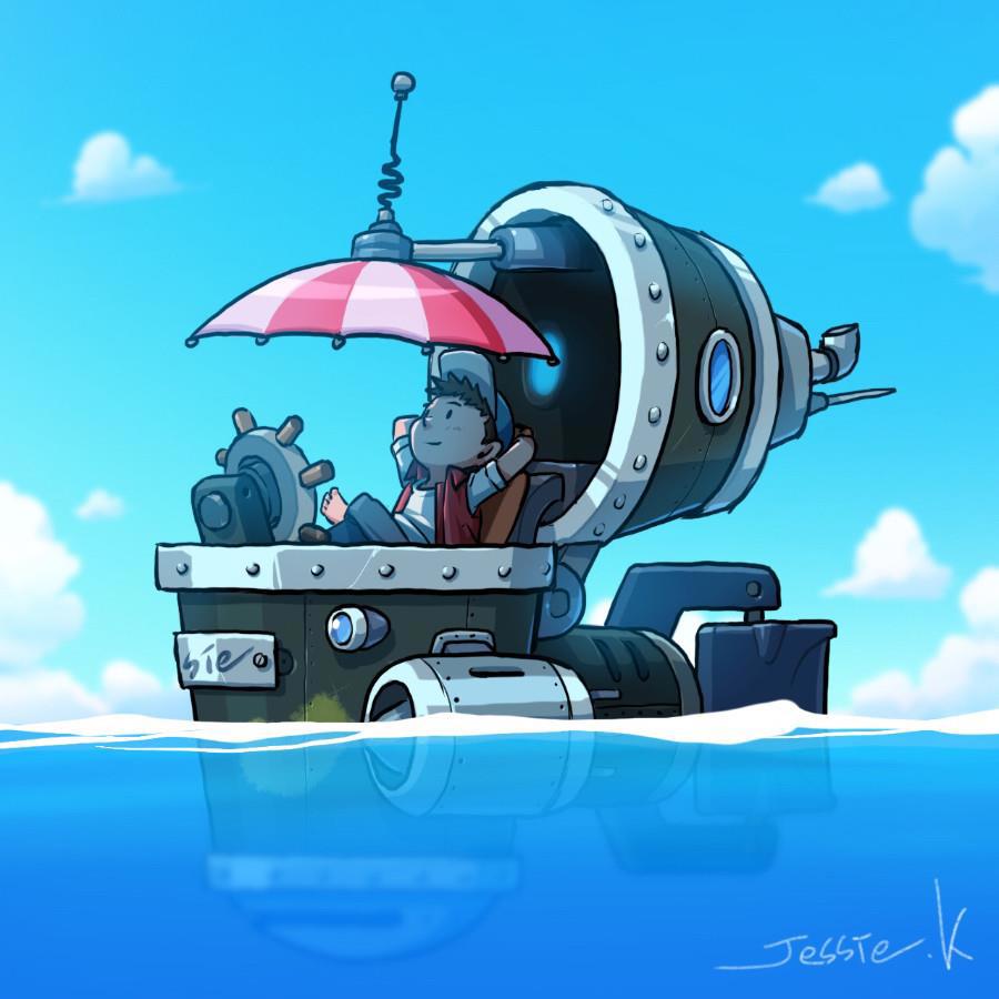 Ночёвка на пляже в тропиках. На фоне остовы выброшенных на берег кораблей. Автор рисунка Dofresh играет словами в его названии - Life is a beach.