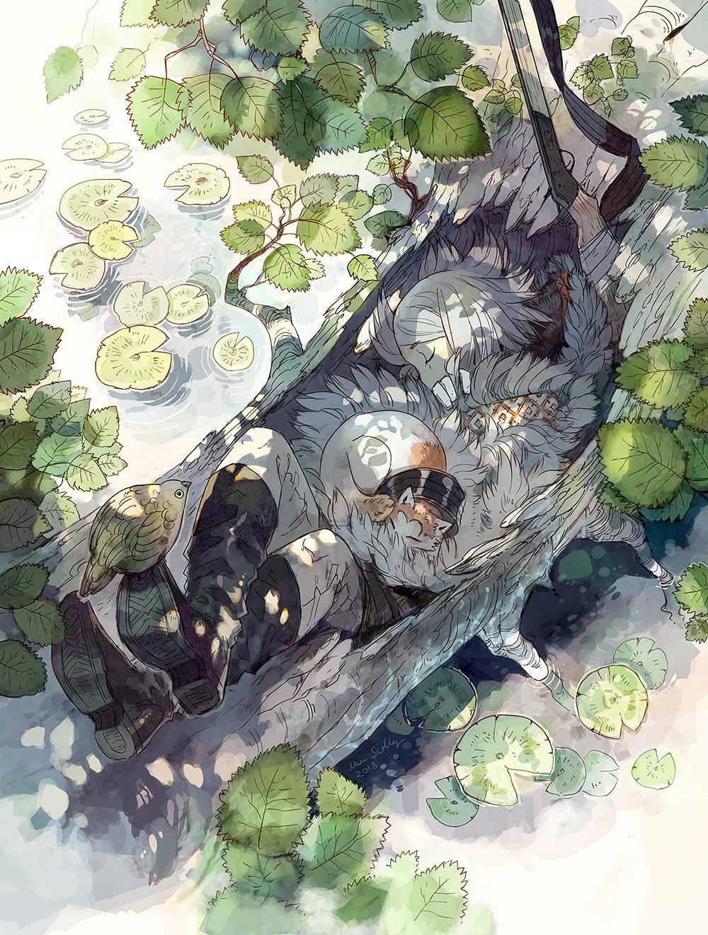 Та же вселенная и та же художница Minna Sundberg. Безмятежный сон в полом стволе дерева. Ещё и с котиком!