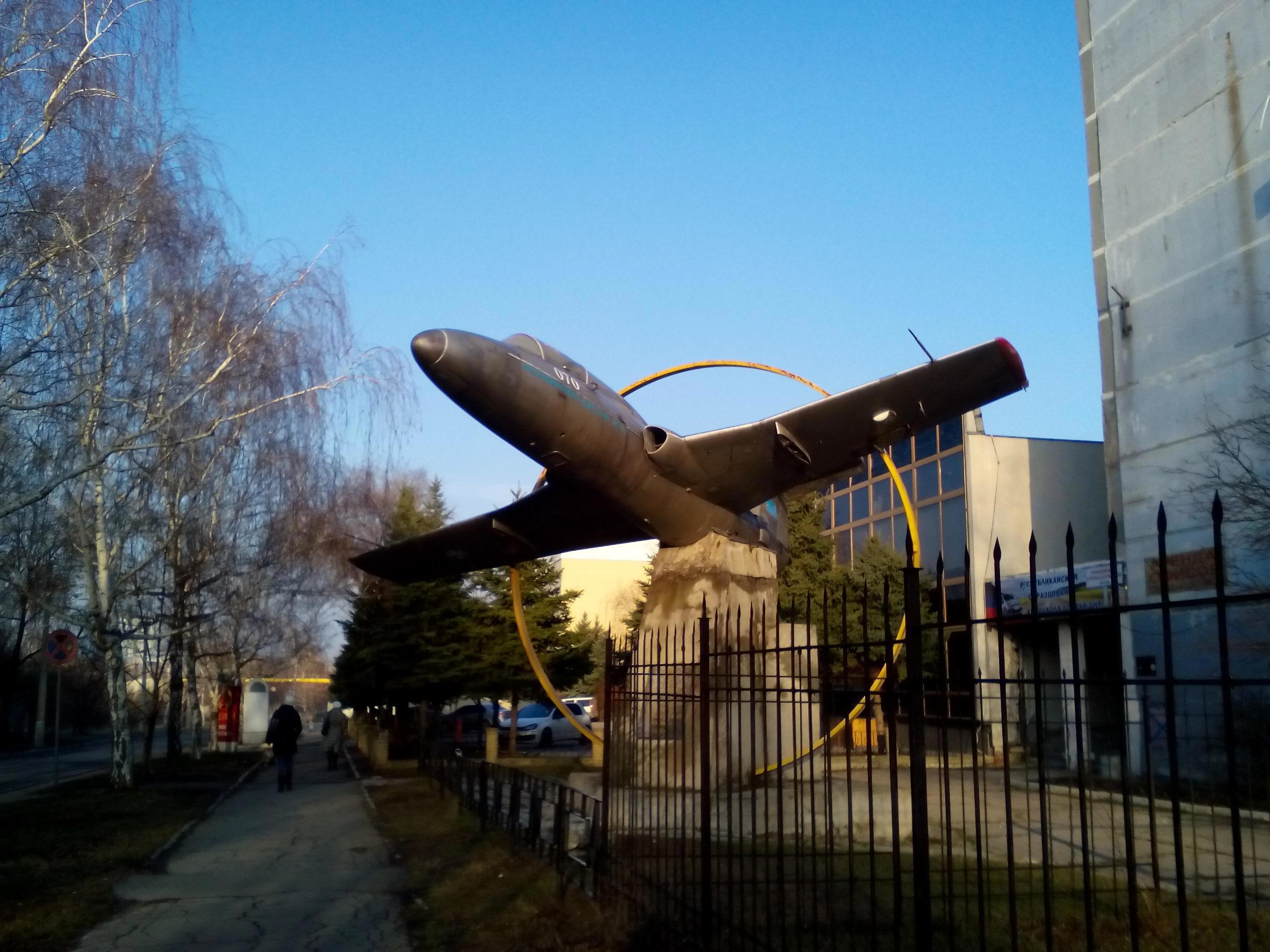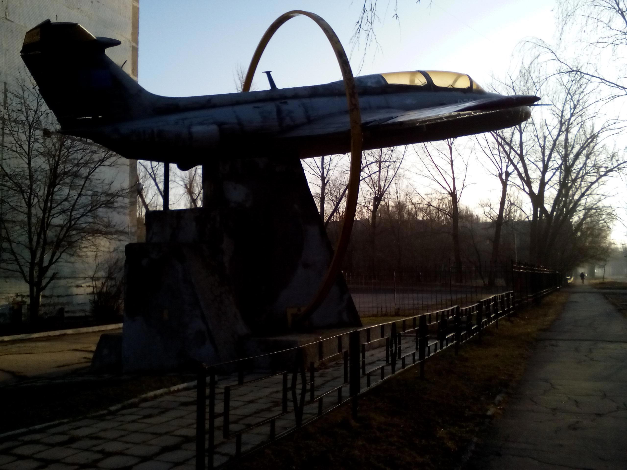 И совершенно неожиданно нашла неподалеку от дома такое. Старинный клуб ДОССАФ украшен самолетом. Памятник посвящён героям-лётчикам Донецкого клуба ОСОВИАХИМ-ДОСААФ, 1931-2001 .