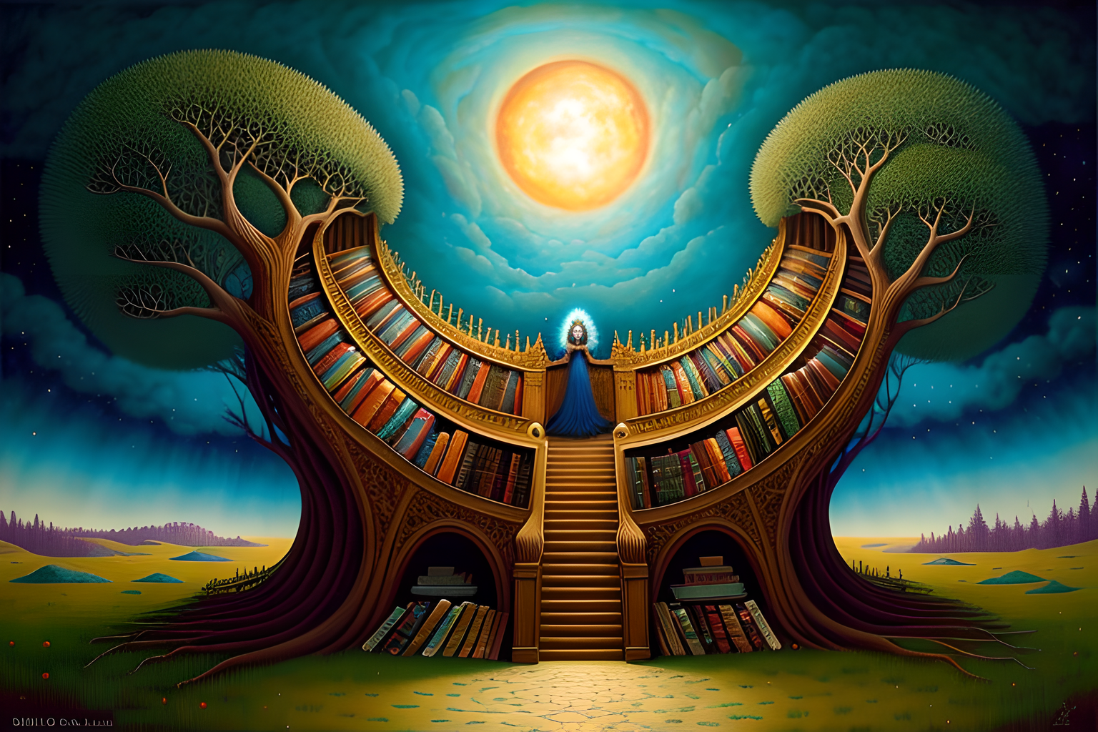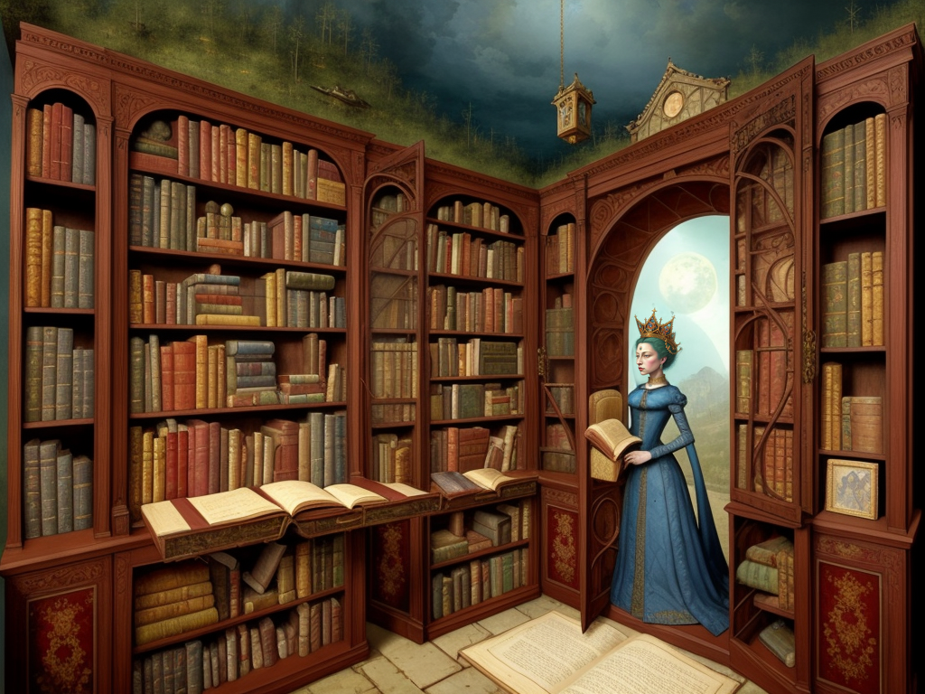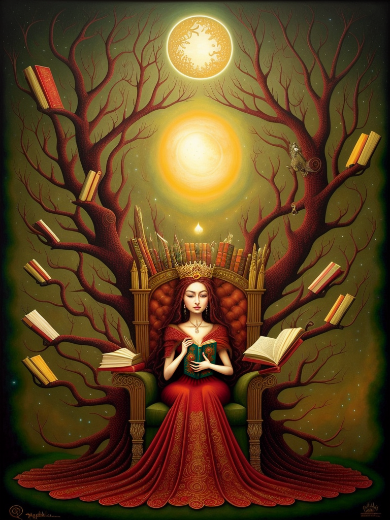 Автор: Юрий ГригорьевQueen of books на троне у книжного дерева.