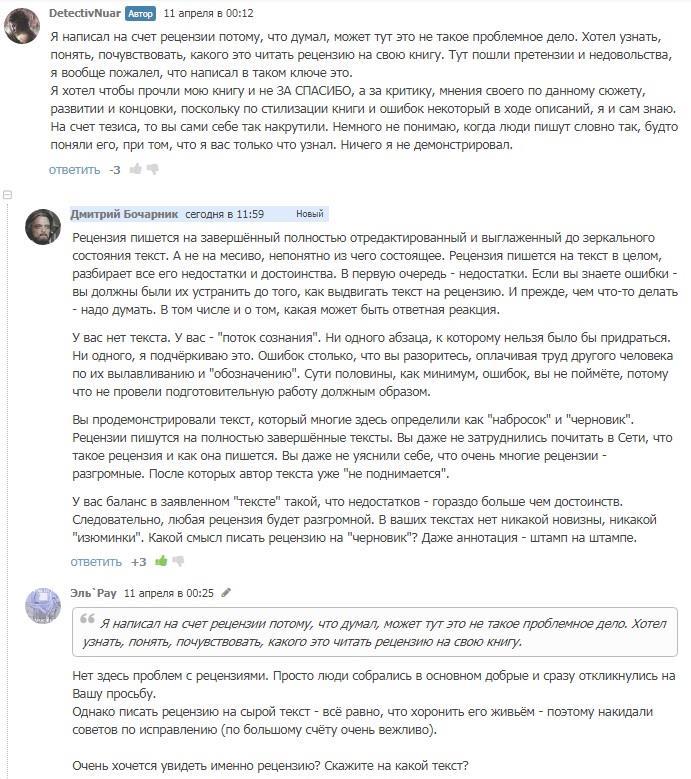 К тому же все знают поговорку, что в чужом глазу соринку видим, а в своём бревна не замечаем. Отсюда, вычитка чужого текста – это хорошая практика редактуры. На всяких семинарах и занятиях текст, в котором кучкуются стилистические ошибки собирают, как пазл из выписок чужих романов. А тут – в какое произведение DetectivNuar не ткни – везде образчик для полномасштабной редактуры. Прямо кладезь! Учись – тренируйся – наблюдай со стороны!