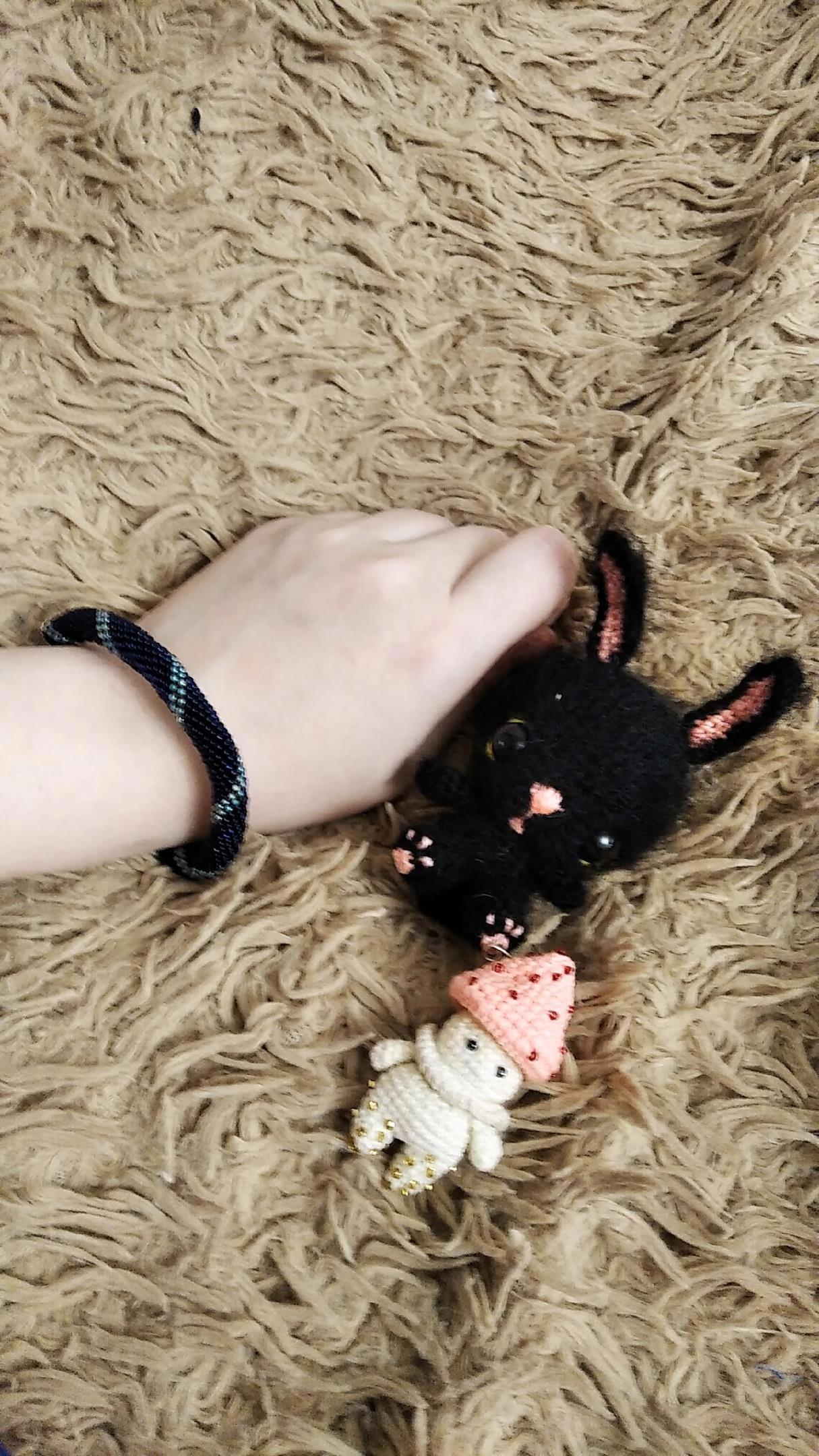 И это еще только начало! Внутри также меня ждал черный милый зайчик и грибок - брелок! А с размером браслета и цветом Светик угадала на отлично!