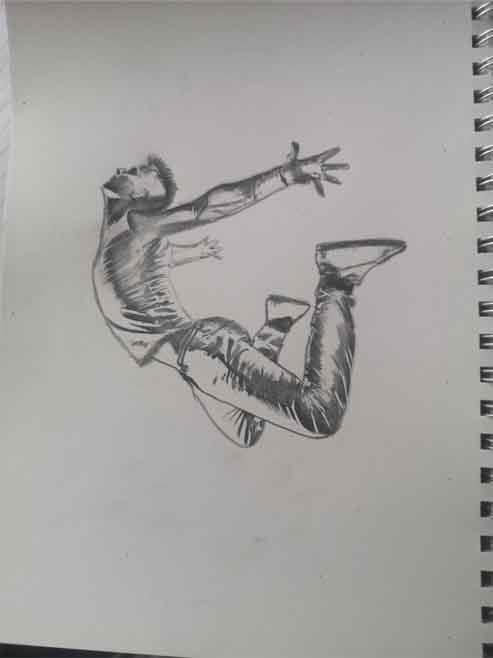 Далее дядечка. Ох, как же я не люблю рисовать людей, руки, ноги, носы. Поэтому изобразим все схематичненько. Суть не в человеке, а в эмоции и чувстве. Мне надо передать динамику, уровень отчаяния и расчлененки.