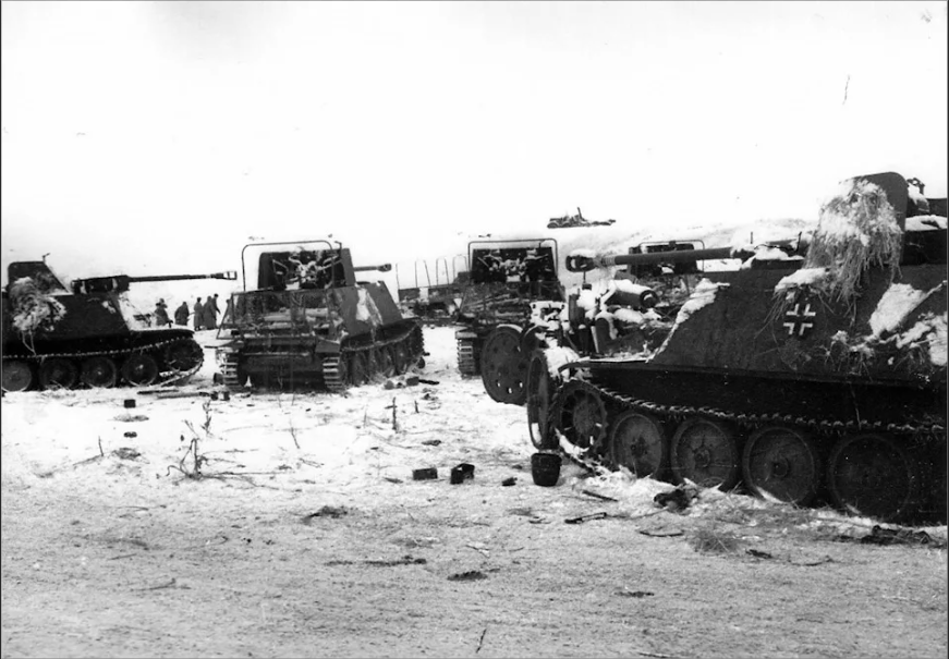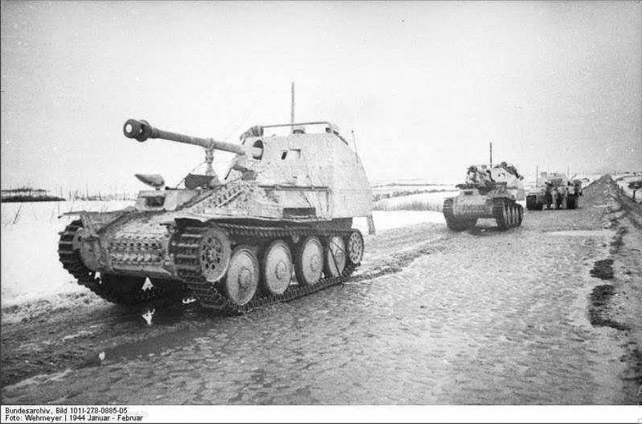 В июле 1942 года на вооружение Вермахта начали поступать истребители танков Marder II и Marder III. Первым подразделением, получившим новые боевые машины, стала 1-я батарея противотанкового дивизиона 13-й танковой дивизии, воевавшей на южном фланге Восточного фронта. Вслед за ней «мардеры» появились в 3-й и 24-й танковых дивизиях.