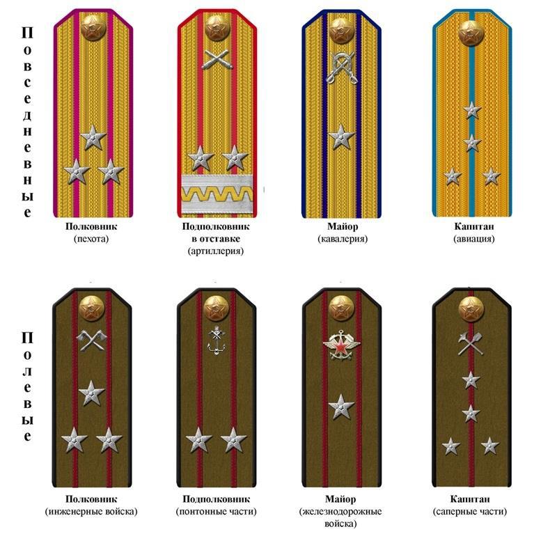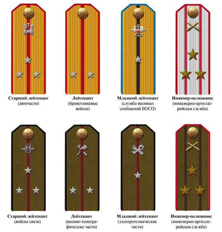 & Для младших и старших офицеров инженерно-технической службы существовавшие ранее воинские звания, начинающиеся со слова «инженер» от инженер-лейтенанта до инженер-полковника, заменялись состоящими из общевойсковых званий младших и старших офицеров с добавлением слова «инженер» — лейтенант-инженер, старший лейтенант-инженер, капитан-инженер, майор-инженер, подполковник-инженер, полковник-инженер.