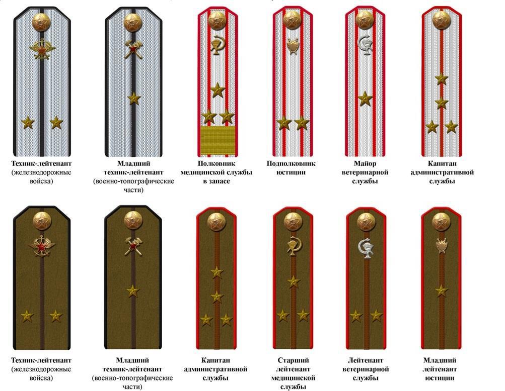 Для офицеров со средним военно-техническим (или просто со средним техническим) образованием оставлялись существующие с 1942 года воинские звания: