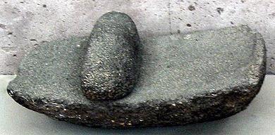 Менее распространён курант в виде плоской полукруглой плиты, которой производят размол путём качания её в вертикальном положении на плоском основании зернотёрки. Такой инструмент несколько напоминает ручные жернова с вертикальным верхним камнем.