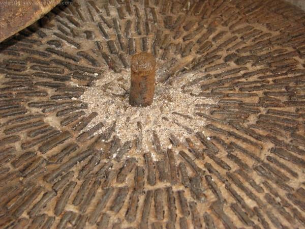 Бороздки насечки служат также как бы путями, по которым размалываемое зерно подвигается от очка к окружности и сходить с жернова. Так как жернова, даже из лучшего материала, стираются, то насечка должна быть возобновляема время от времени.