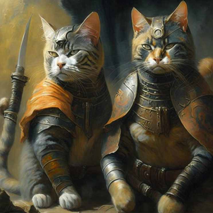 За окном дожди, а я отдыхаю после окончания последней части "Университета". И пока немного баловства: коты-воители от Кандинского в разных стилях. Опасная милота)
