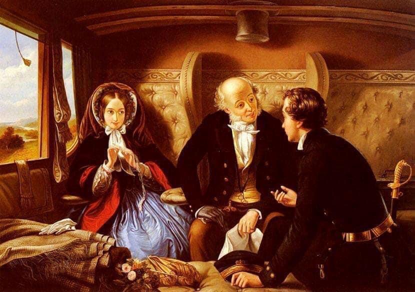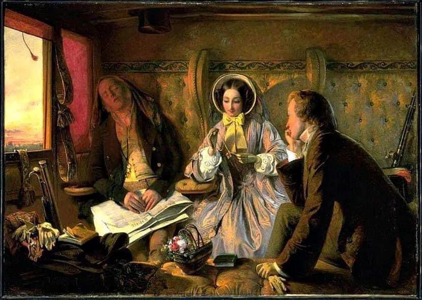 Автор: Элиза ГвиччиолиАнглийский художник Соломон Абрахам (1824-1862 г.г.) 1854 году написал картину „Первый класс. Встреча. Влюбленные с первого взгляда".